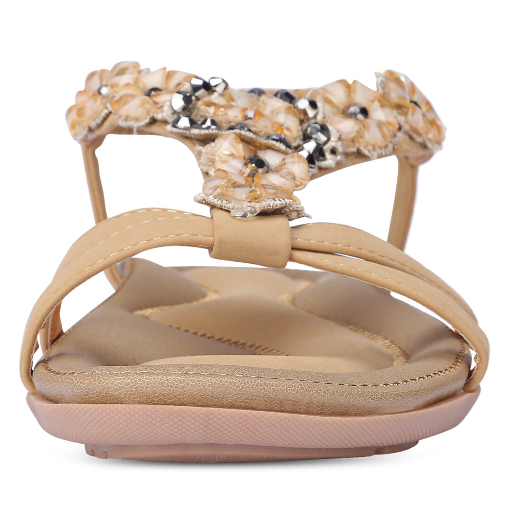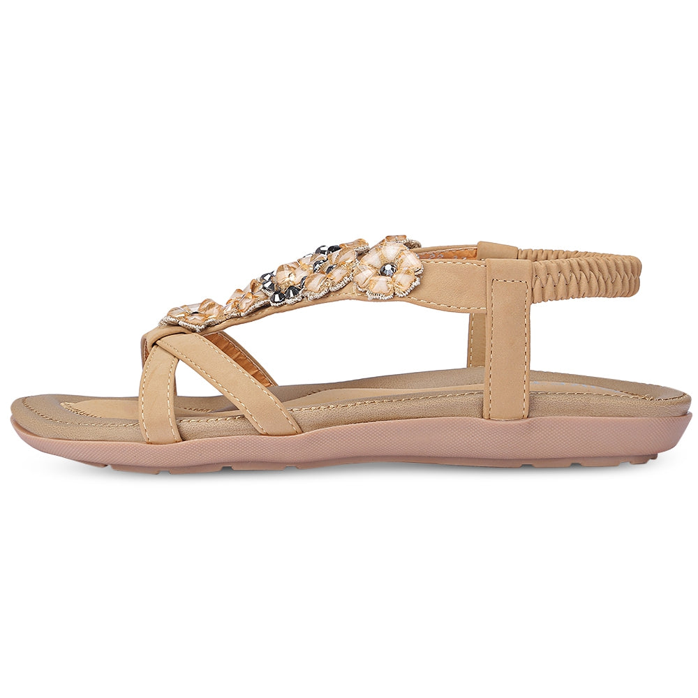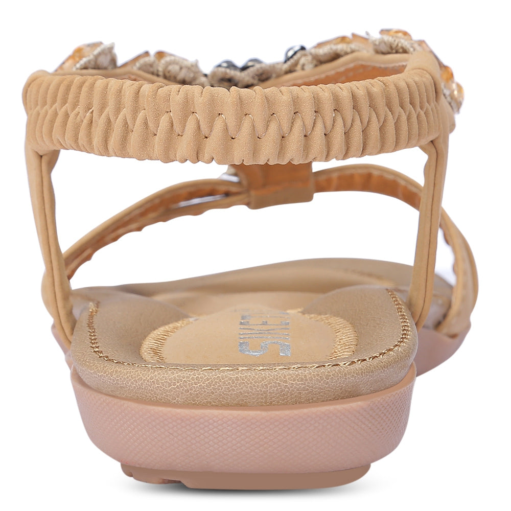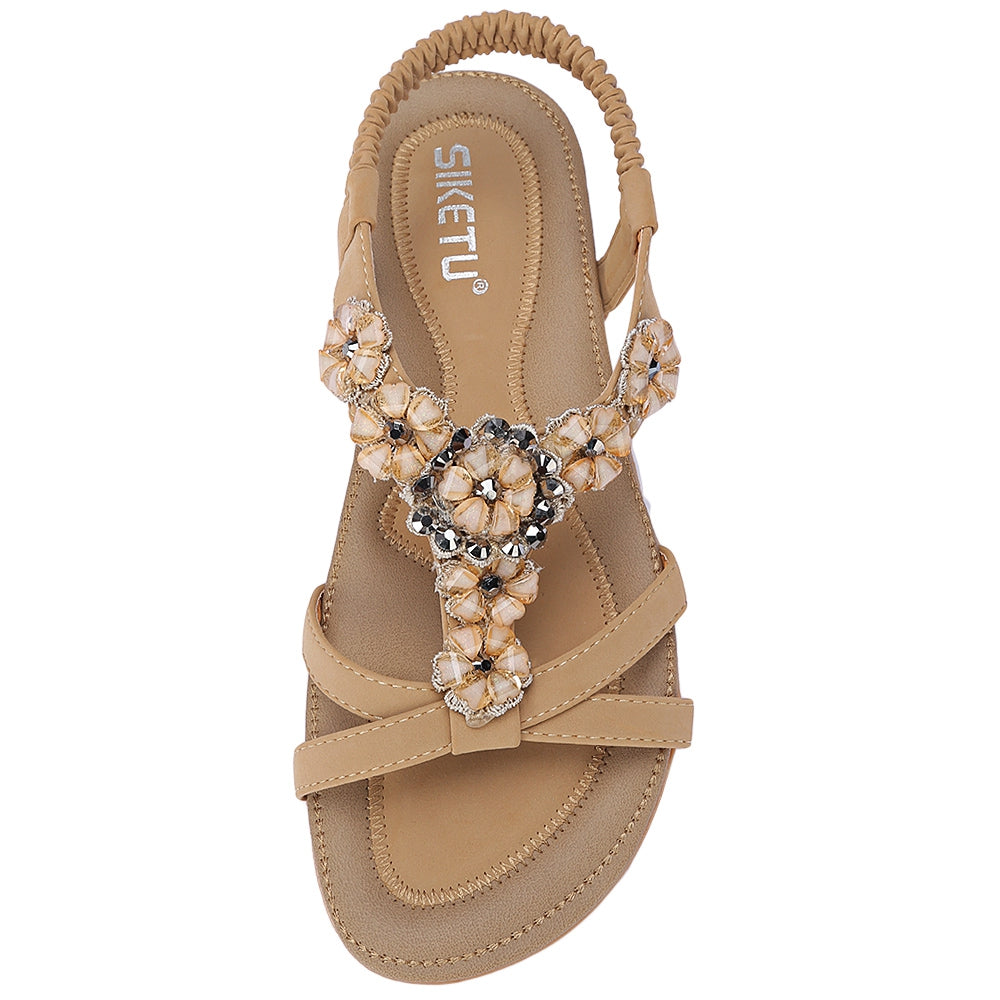 SIKETU Bohemia Beads Open Toe Elastic Band Gladiator Sandals for Ladies