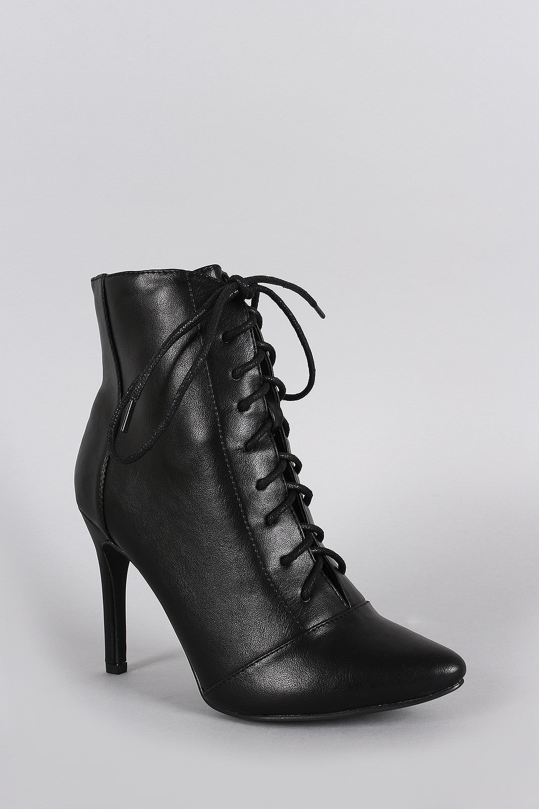 Breckelle Pointy Toe Lace Up Heeled Ankle Boots