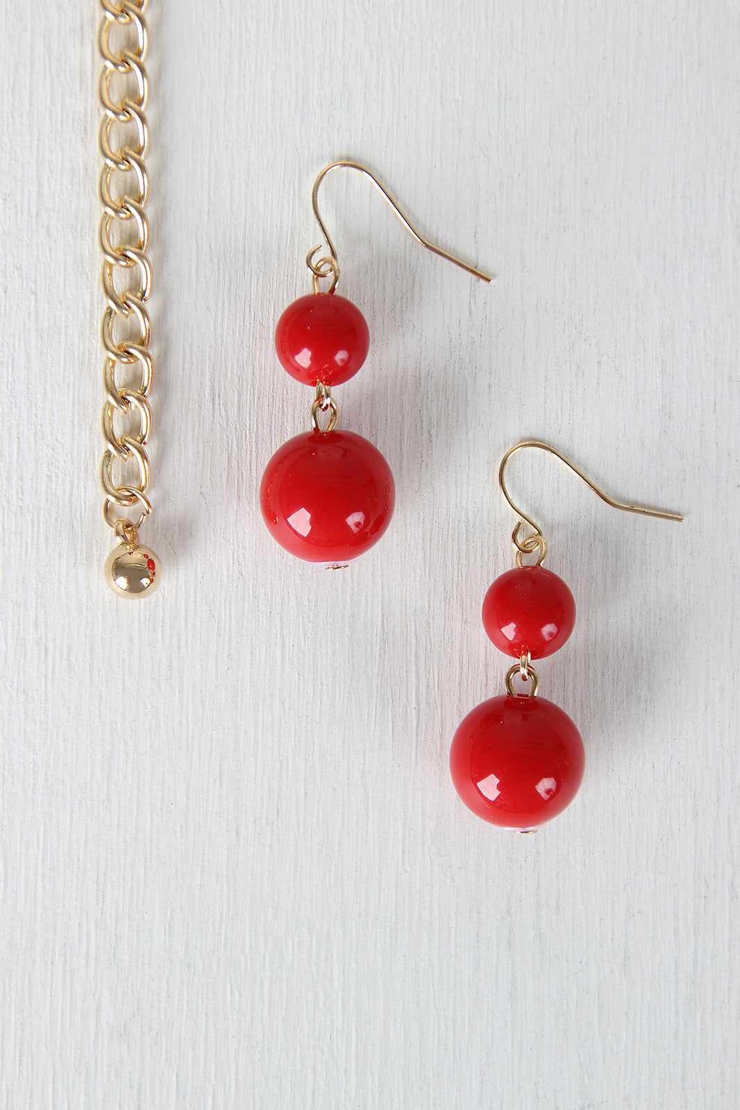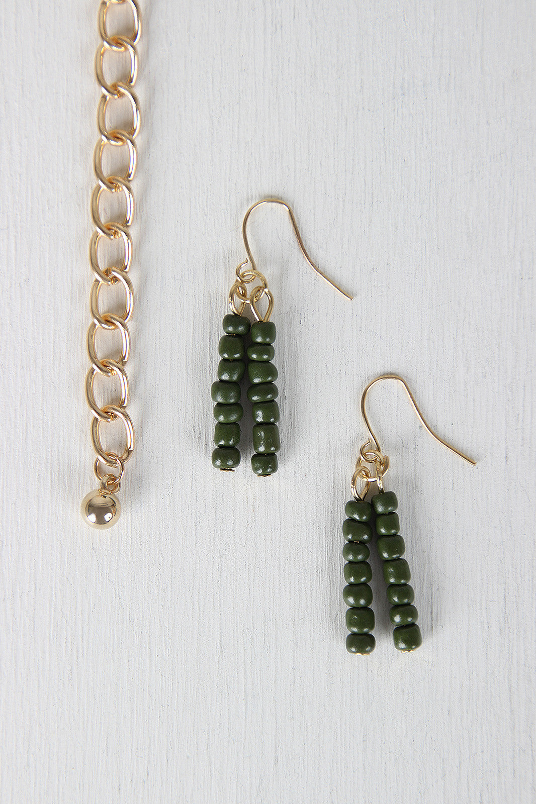 A statement fringe front, and a glossy metallic diamond design constructed from cube beads at the center. Finished with an adjustable lobster hook closure and matching earrings. Lead compliant.