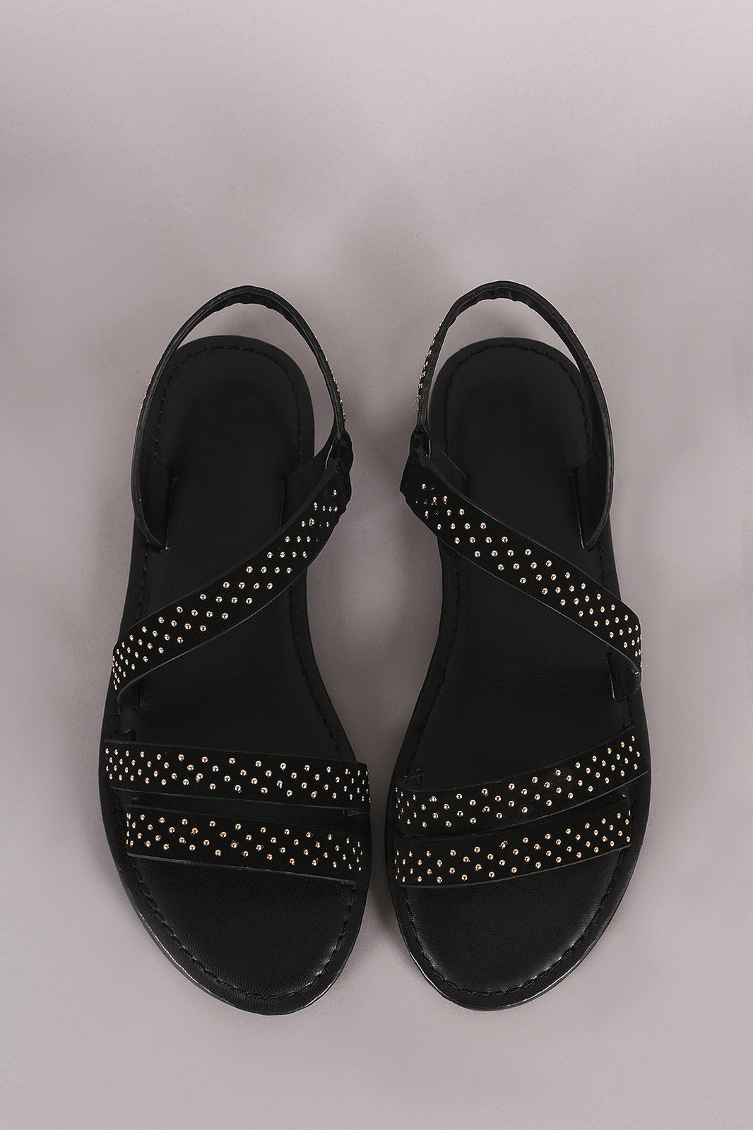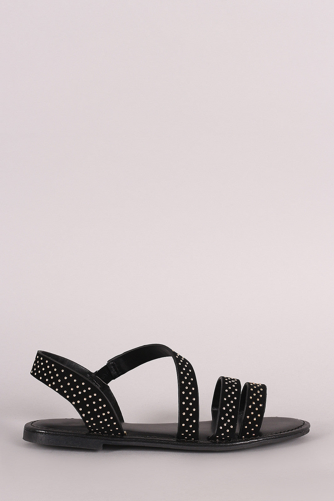 Bamboo Nubuck Studded Asymmetrical Strappy Flat Sandal
