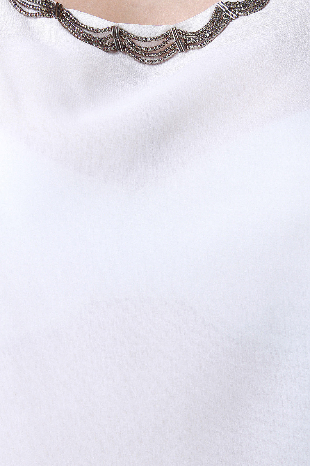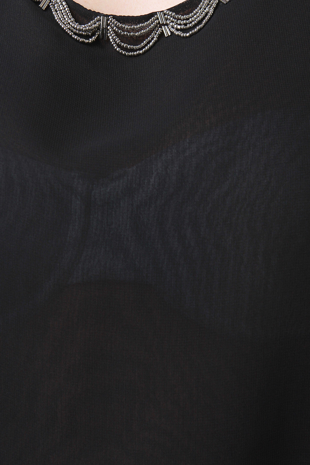 This plus size top features a woven knit fabrication, detailed round neckline with beads, sleeveless fit, and finished with an asymmetrical wrapped hemline. Accessories sold separately. 100% Polyester.
