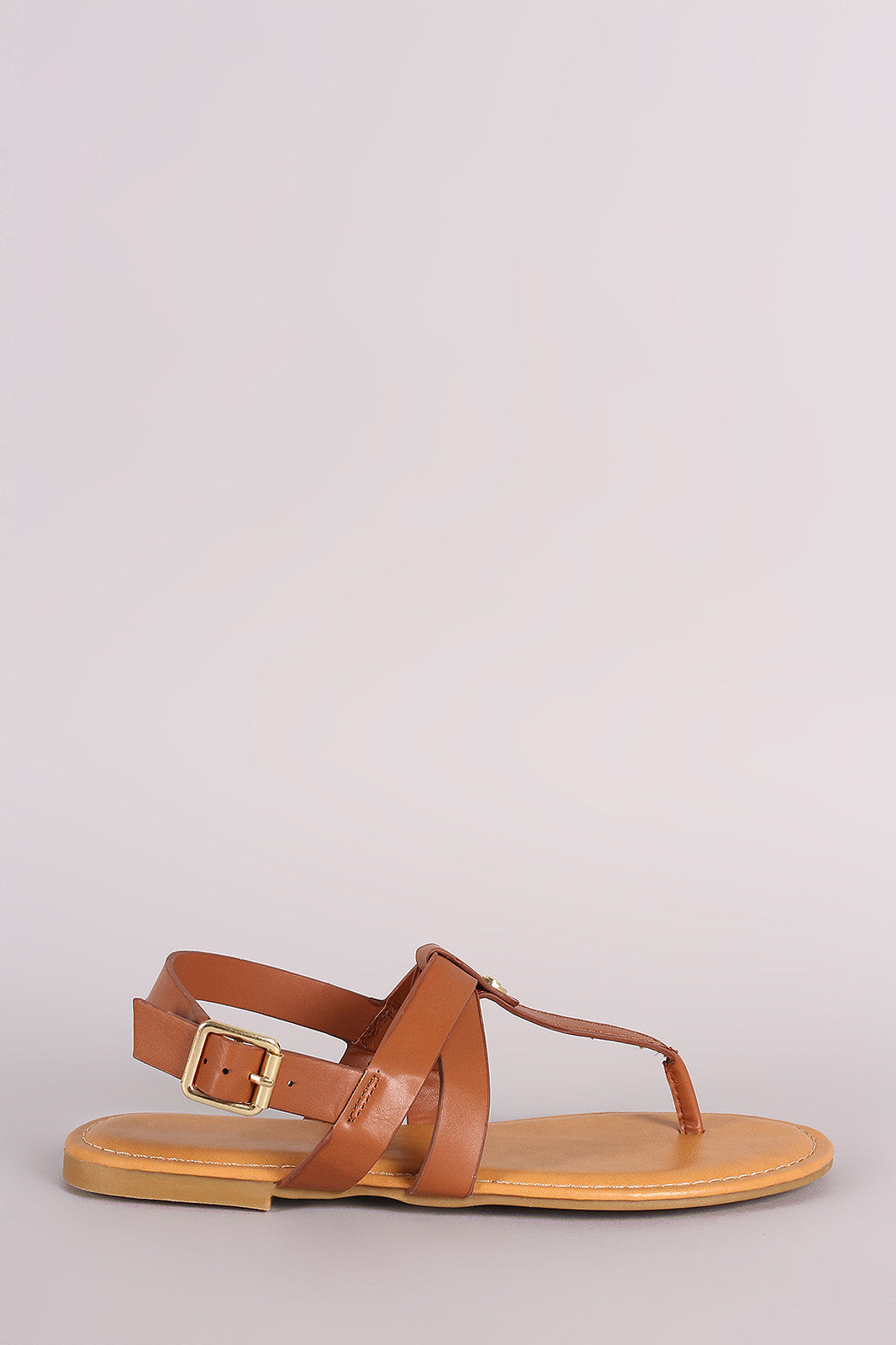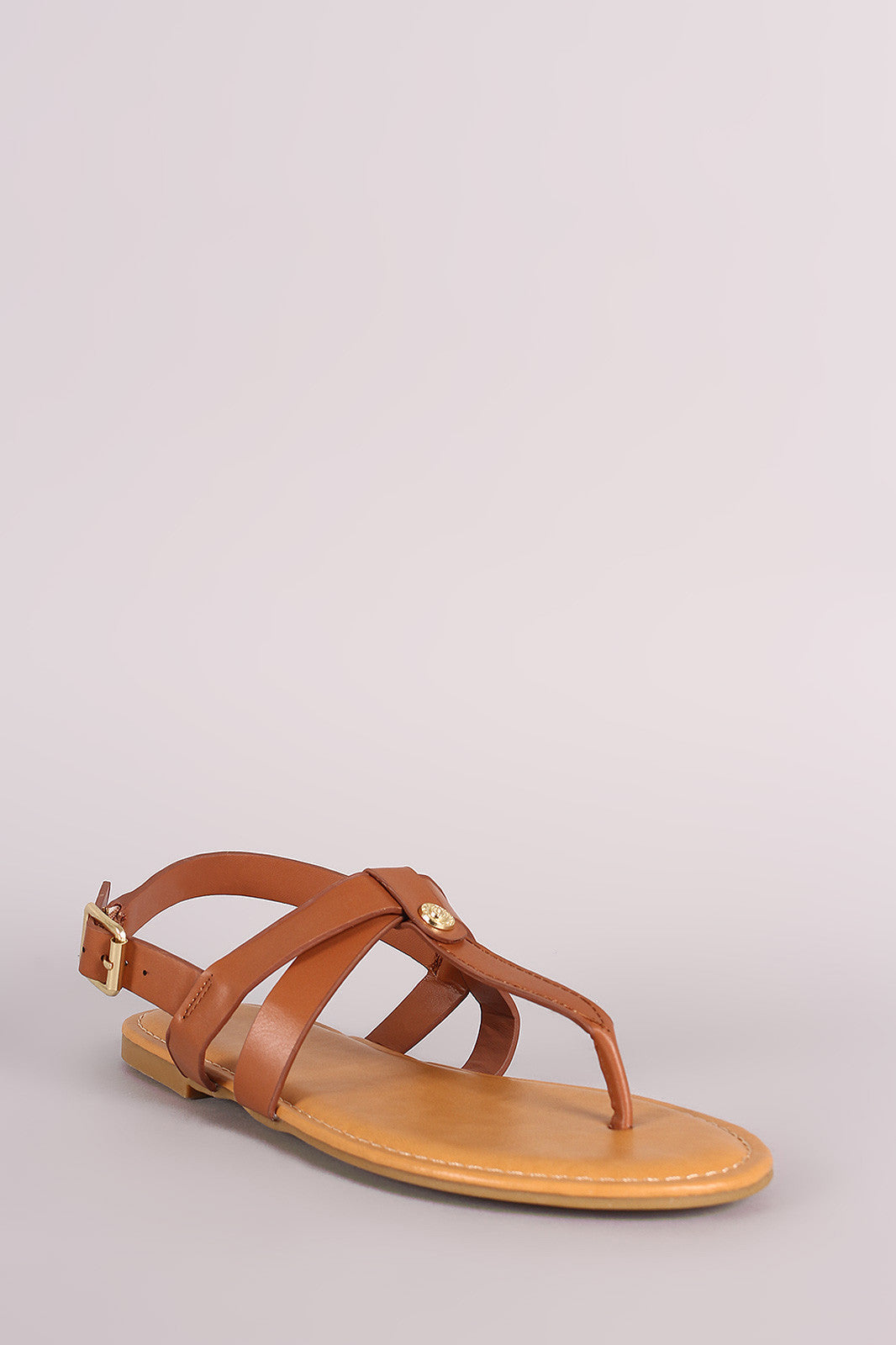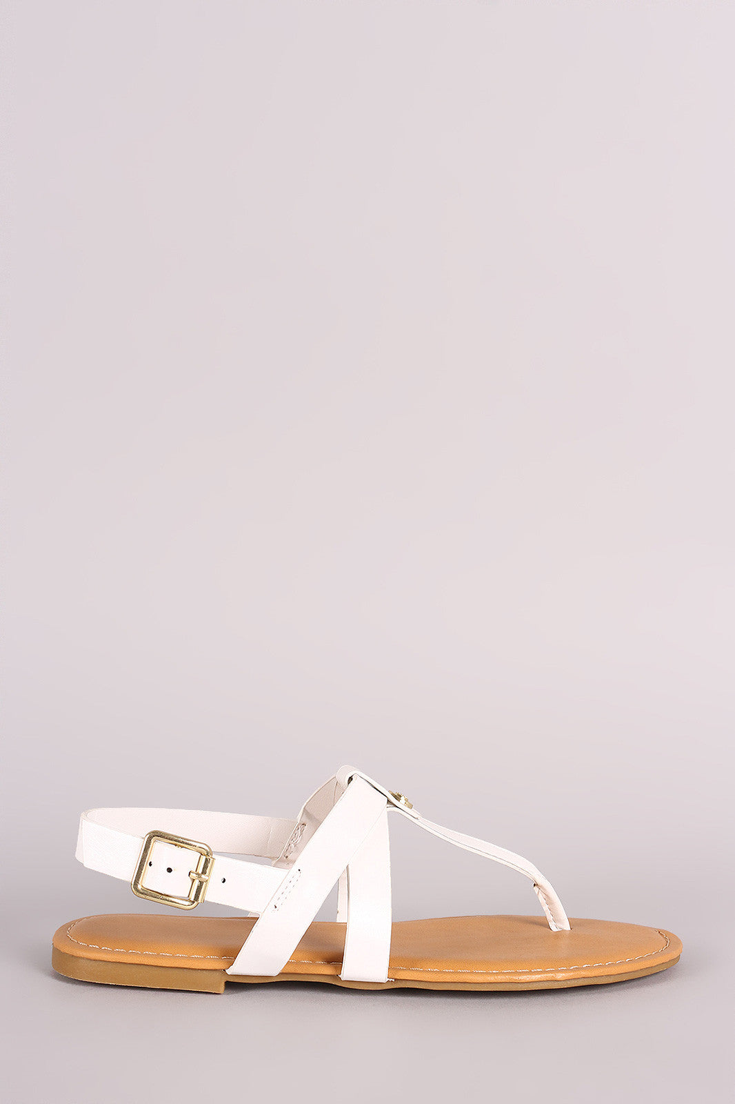 Bamboo Medallion T-Strap Slingback Thong Flat Sandal