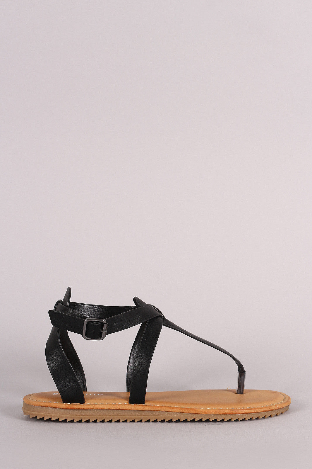 Bamboo Lug Sole Crisscross Ankle Strap Thong Flat Sandal