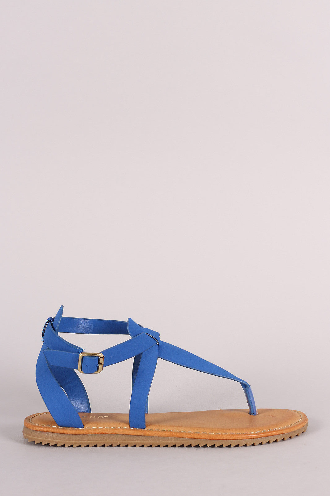 Bamboo Nubuck Lug Sole Crisscross Ankle Strap Thong Flat Sandal