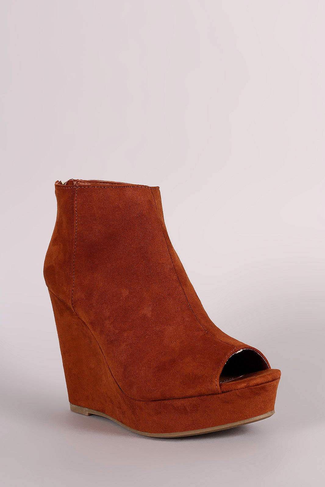 Bamboo Vegan Suede Peep Toe Wedge Booties