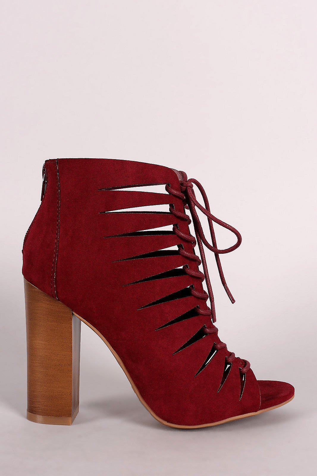 Bamboo Suede Peep Toe Lace-Up Cutout Booties