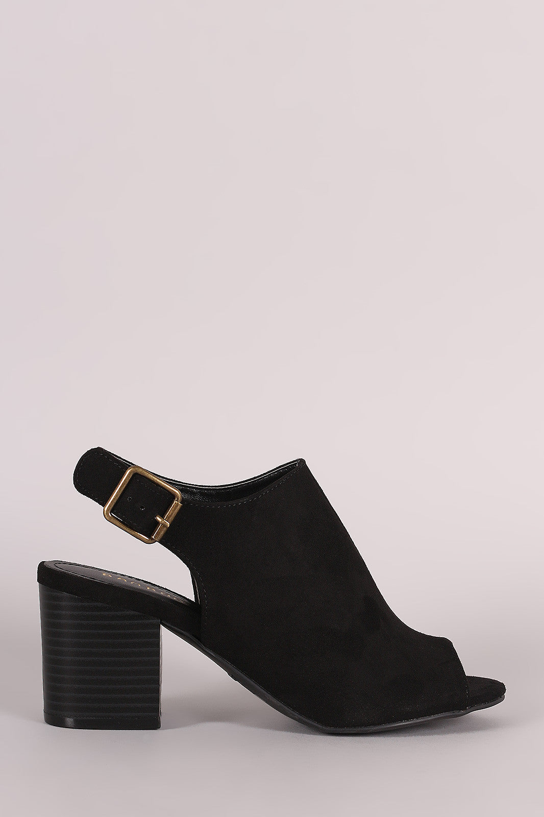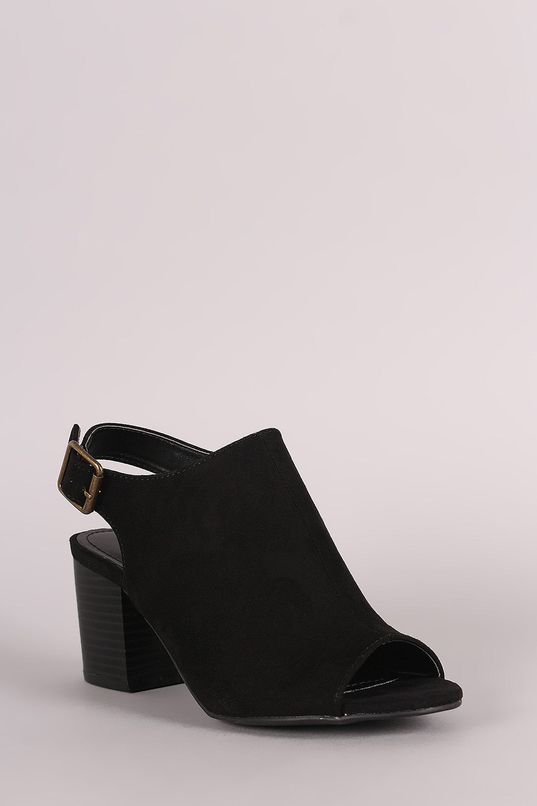 This stylish heel features a soft vegan suede upper with center seam detail, peep toe silhouette, and chunky stacked heel. Finished with a lightly padded insole and adjustable slingback strap with buckle fastening.