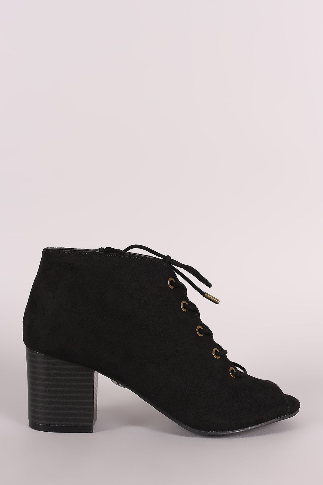 Bamboo Suede Peep Toe Lace-Up Chunky Heeled Booties