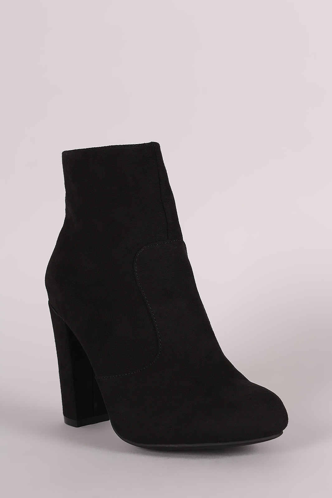 Bamboo Plain Suede Chunky Heeled Ankle Boots