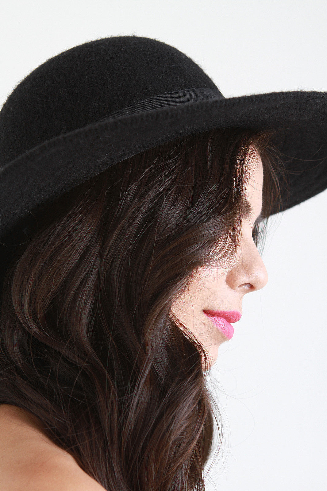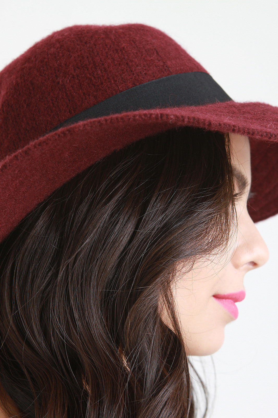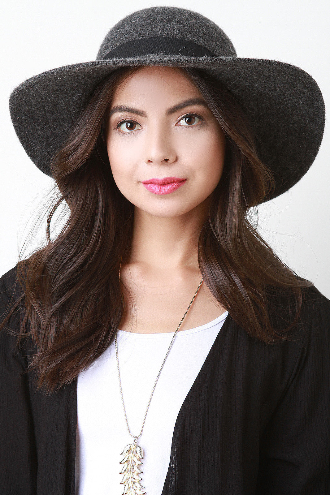 This hat is floopy hat silhouette; featuring, a rounded crown, wide brim, and a decor ribbon trim. Finished with an interior ribbon lining. 100% Wool.