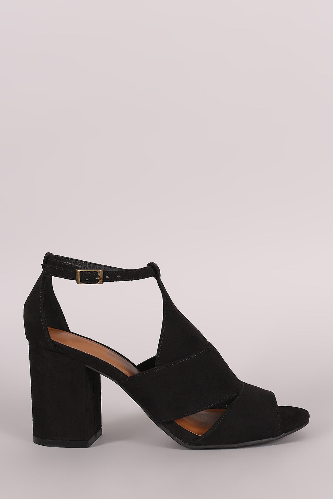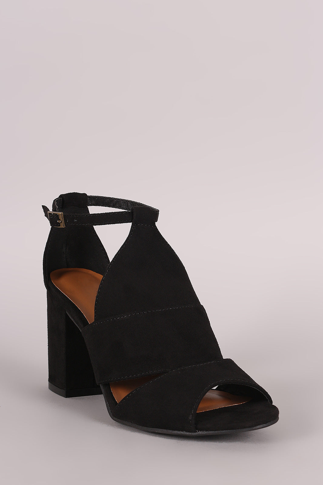 Bamboo Suede Cutout Ankle Strap Chunky Mule Heel