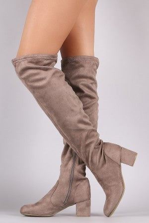 Bamboo Suede OTK Fitted Block Heeled Boots