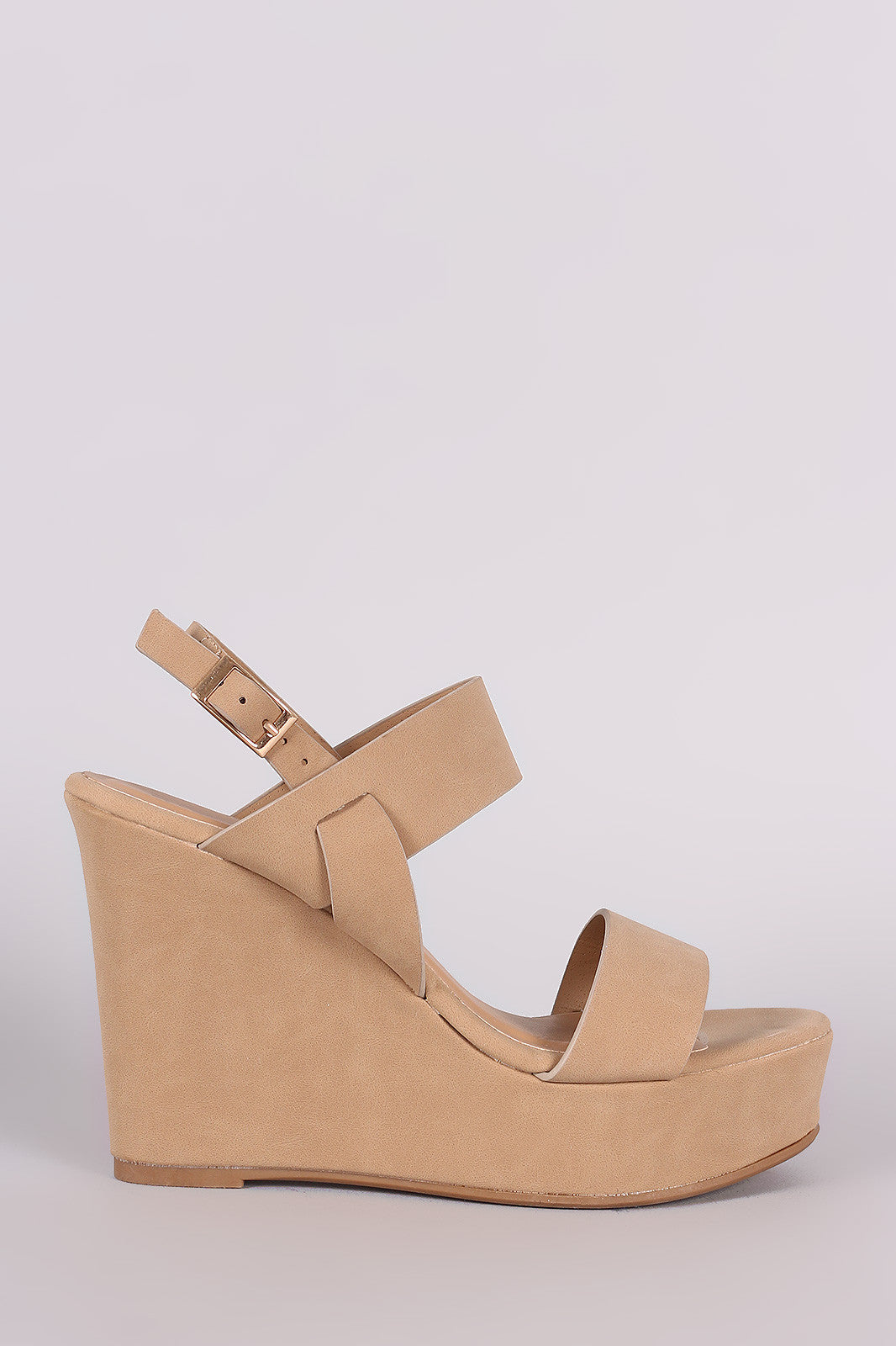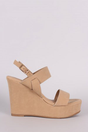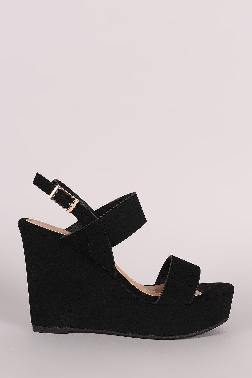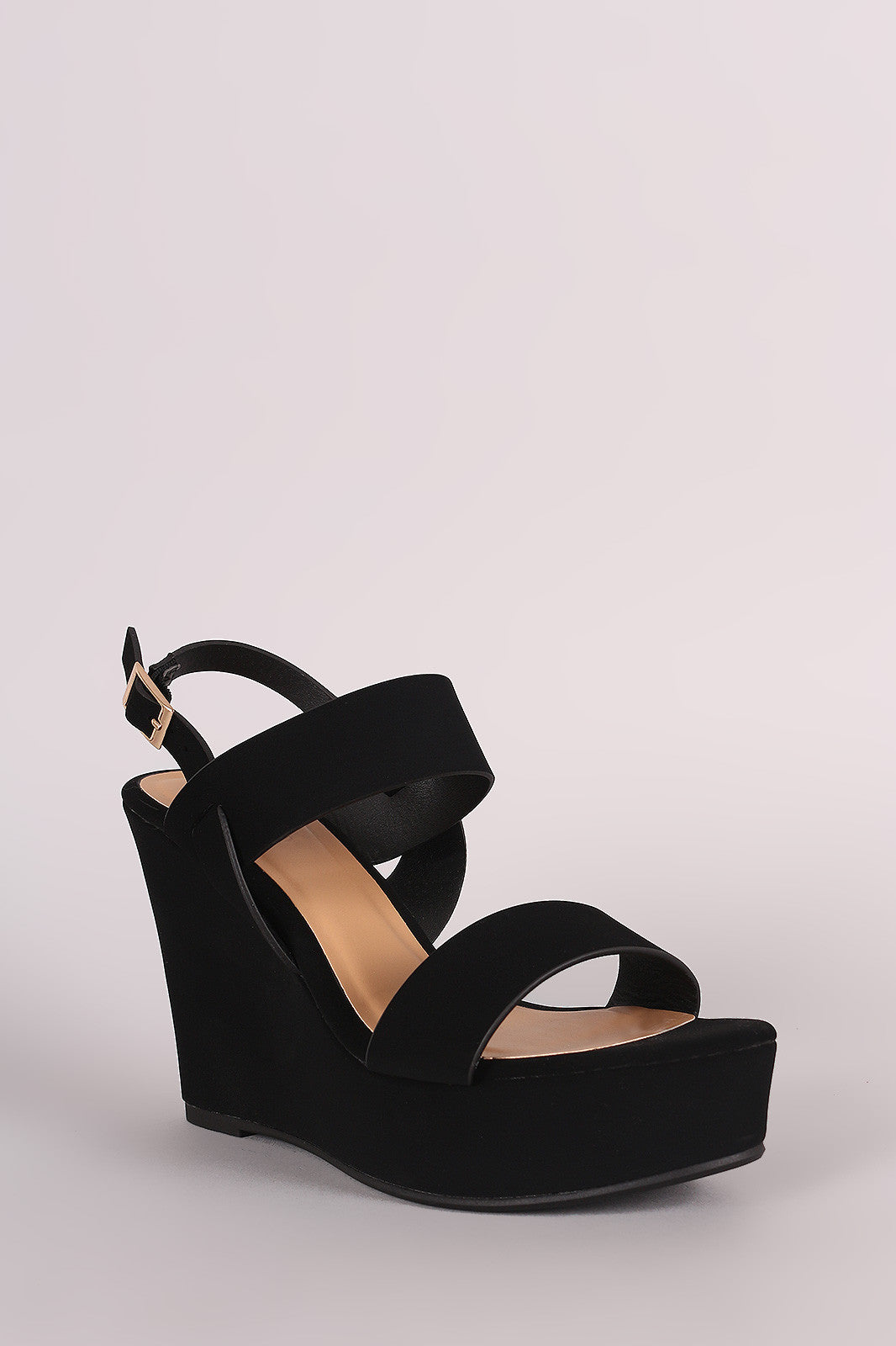 This marvelous wedge features an open toe silhouette, double wide bands, wrapped platform, and wedge heel. Finished with a lightly padded insole and adjustable slingback strap with buckle closure.