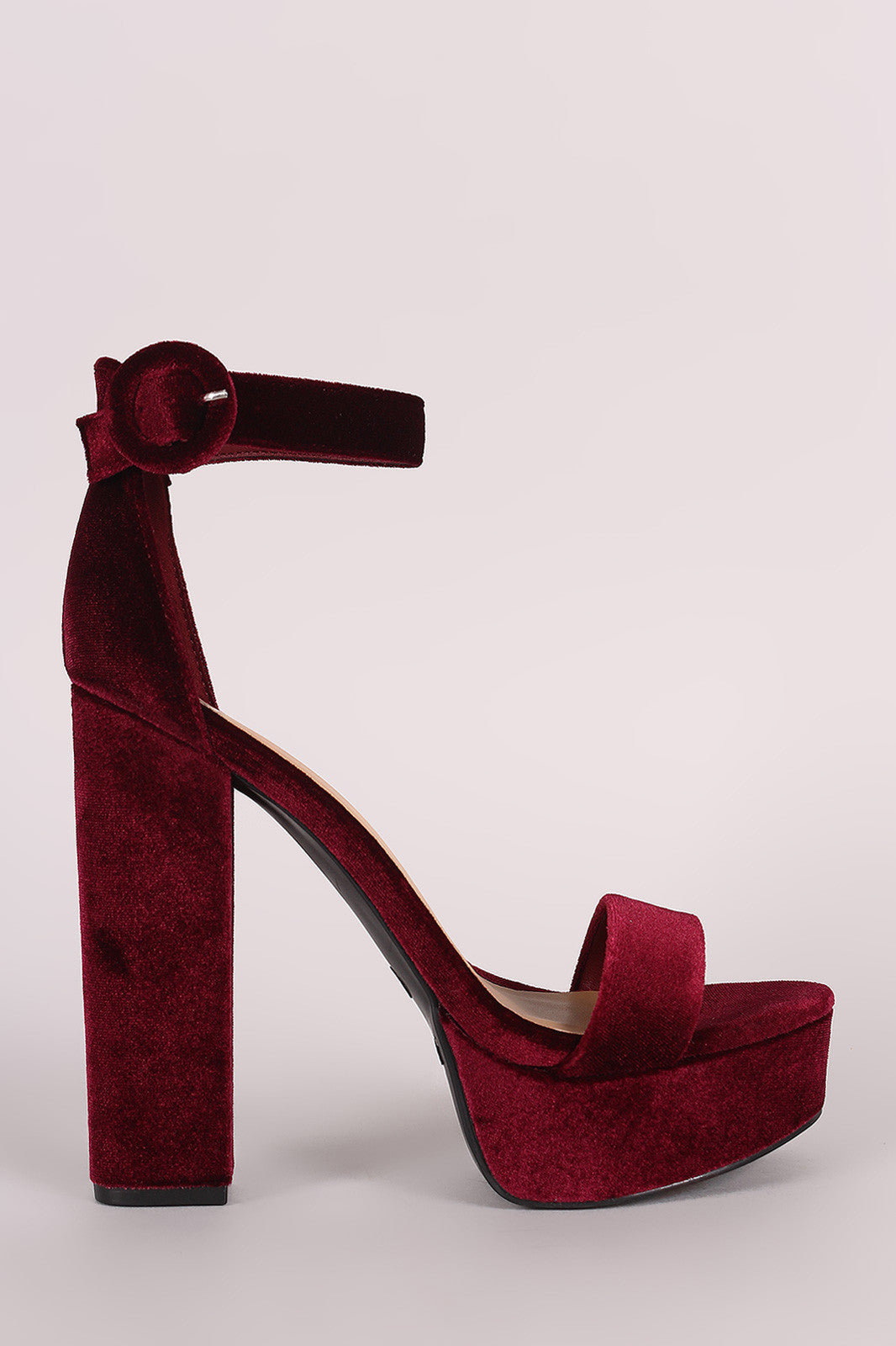 Bamboo Velvet Ankle Strap Chunky Platform Heel
