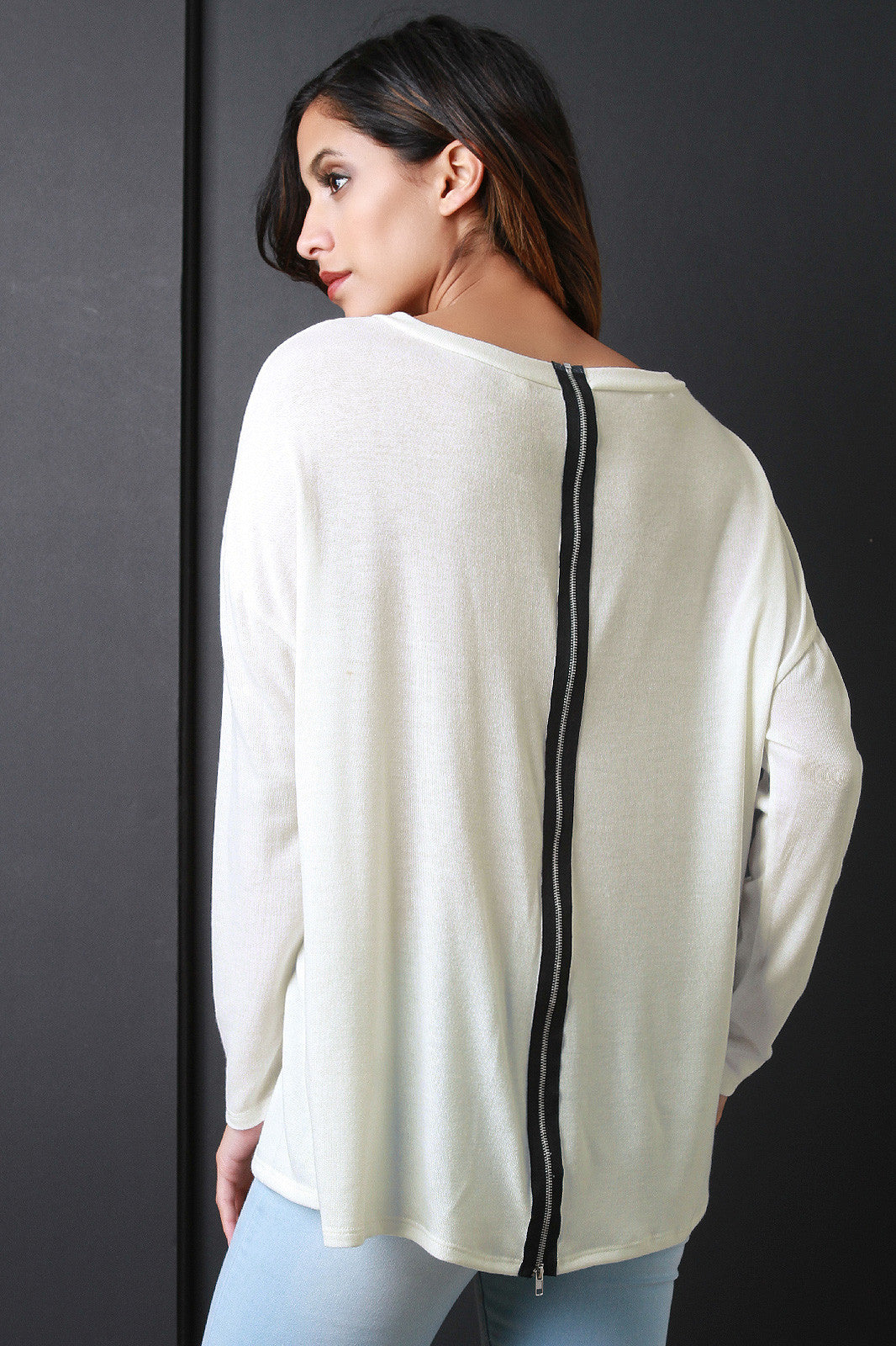 Zip Back Long Sleeves Sweater Top