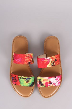 Bamboo Watercolor Double Band Slide Sandal