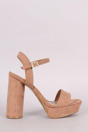 Bamboo Suede Ankle Strap Chunky Round Heel