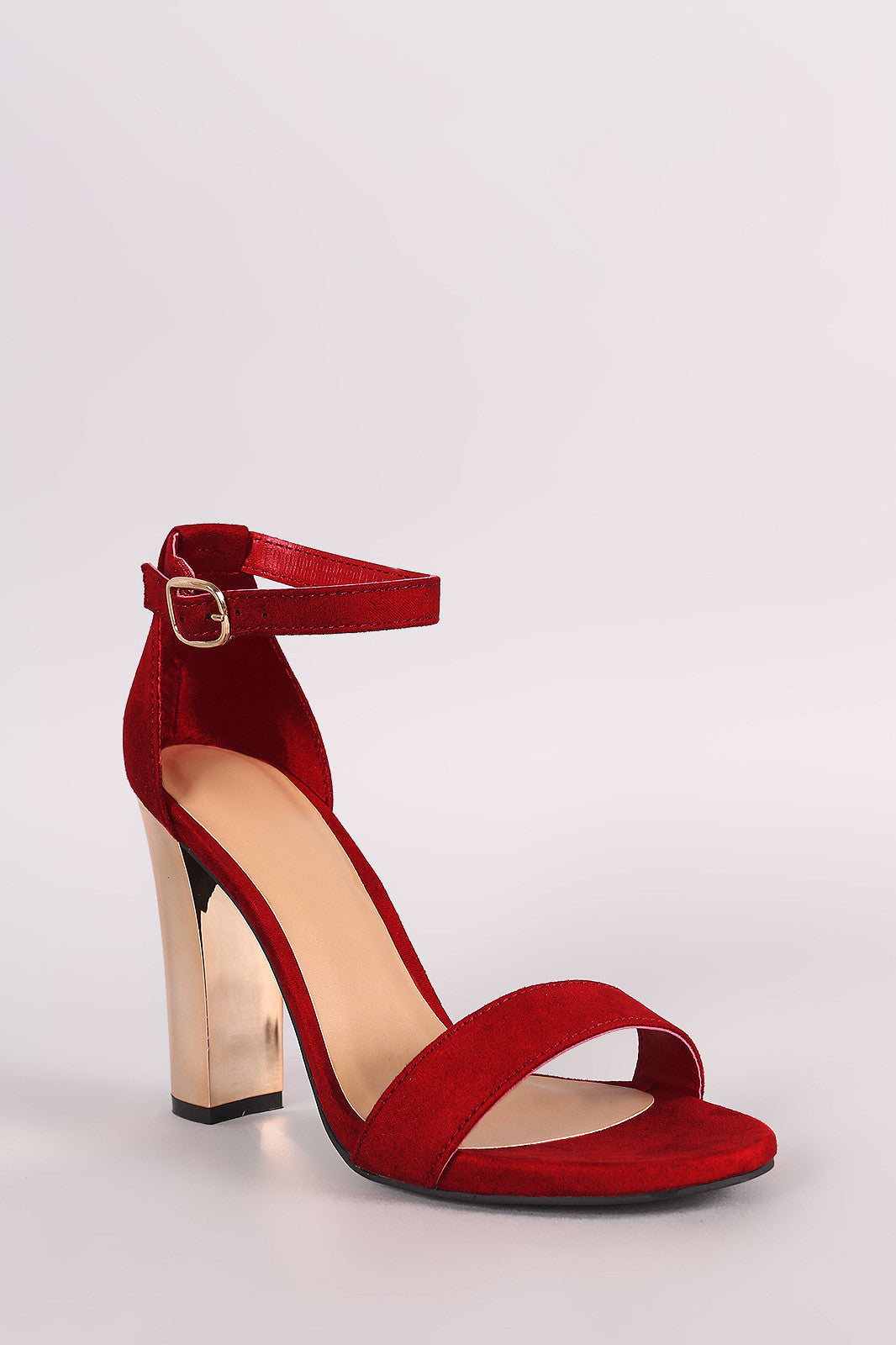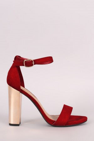 Bamboo Open Toe Ankle Strap Metallic Chunky Heel