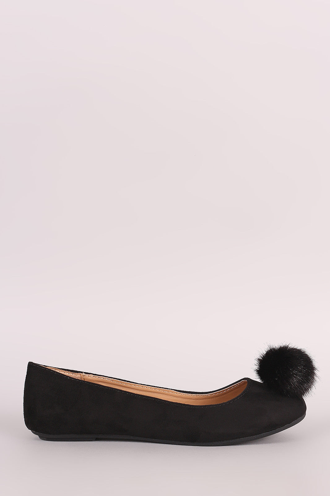 Bamboo Pom Pom Accent Suede Ballet Flat
