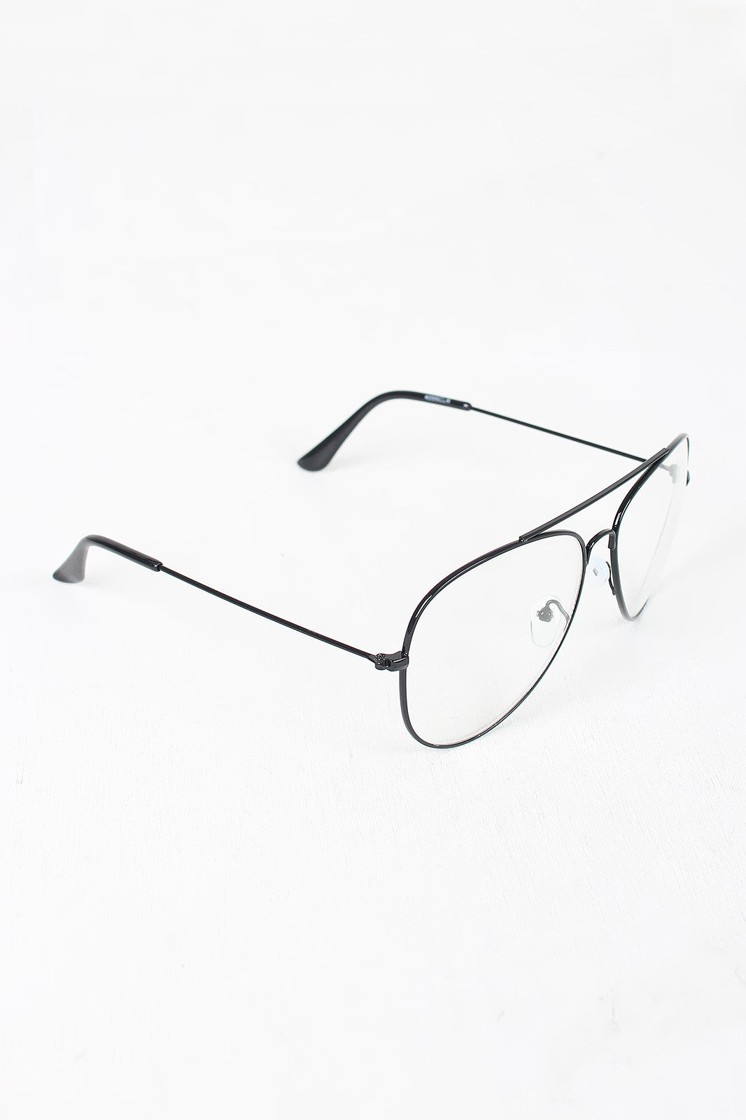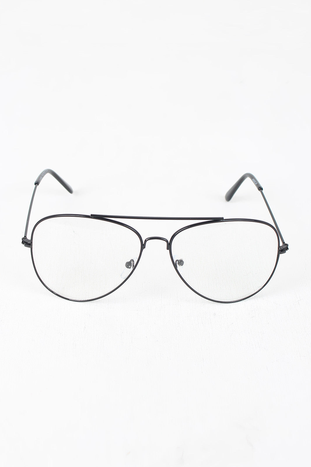These glasses features clear lens, thin wire aviator frames, double bridge, and nose pads.