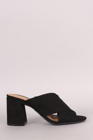 Bamboo Suede Crisscross Chunky Mule Heel