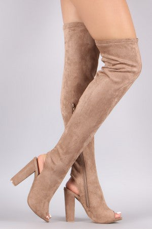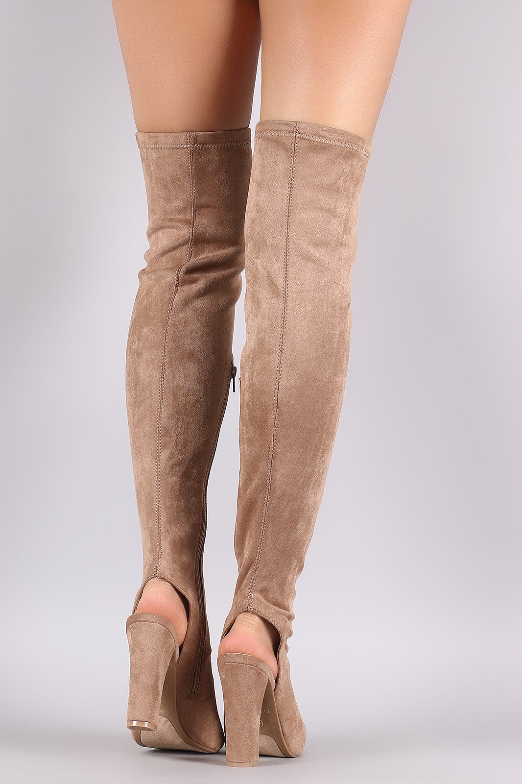 Bamboo Stretchy Fitted Over-The-Knee Open Back Suede Boots