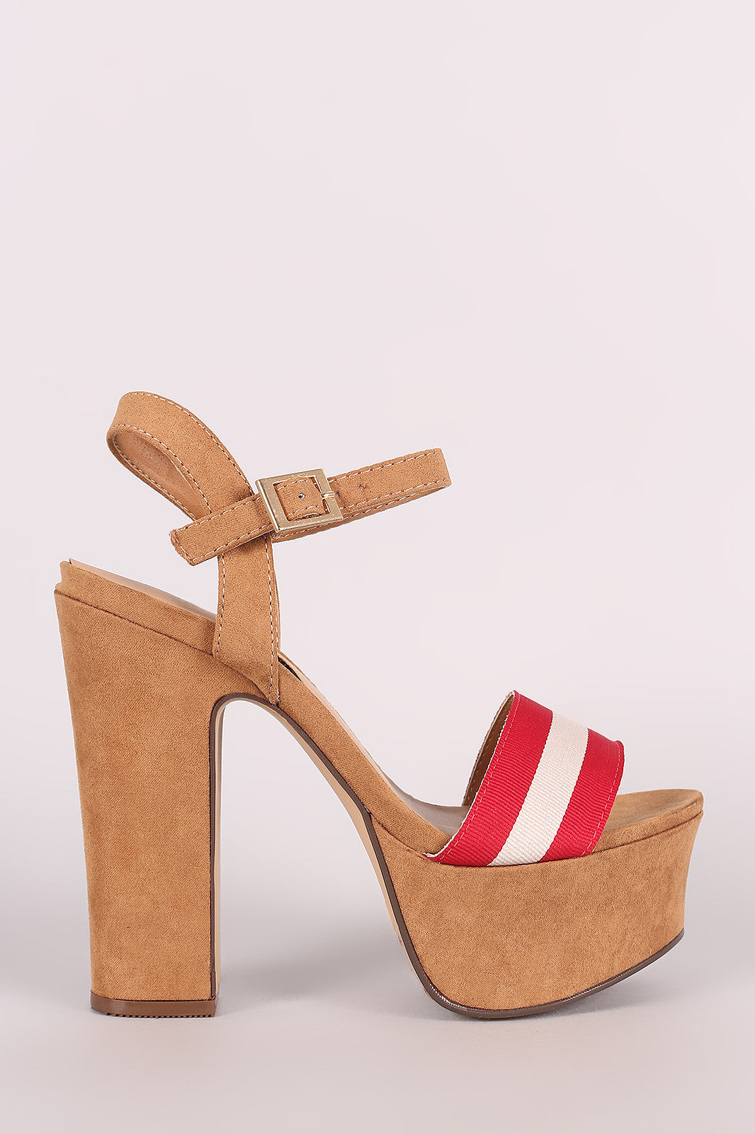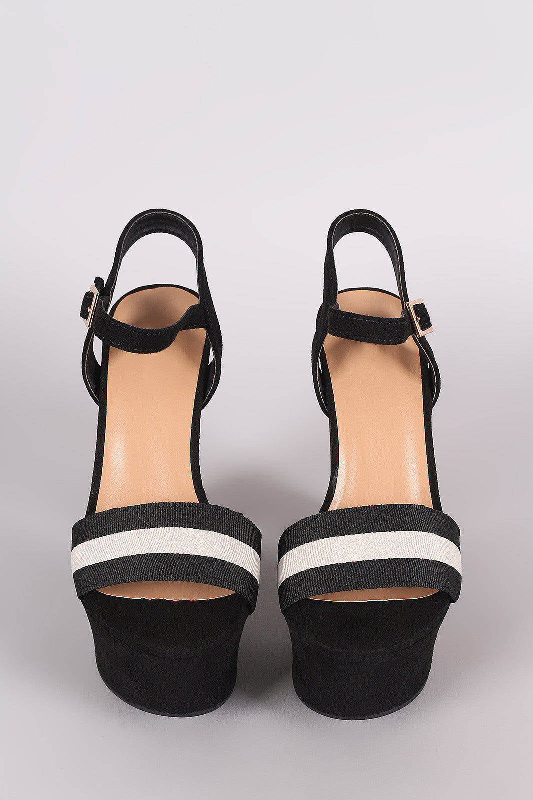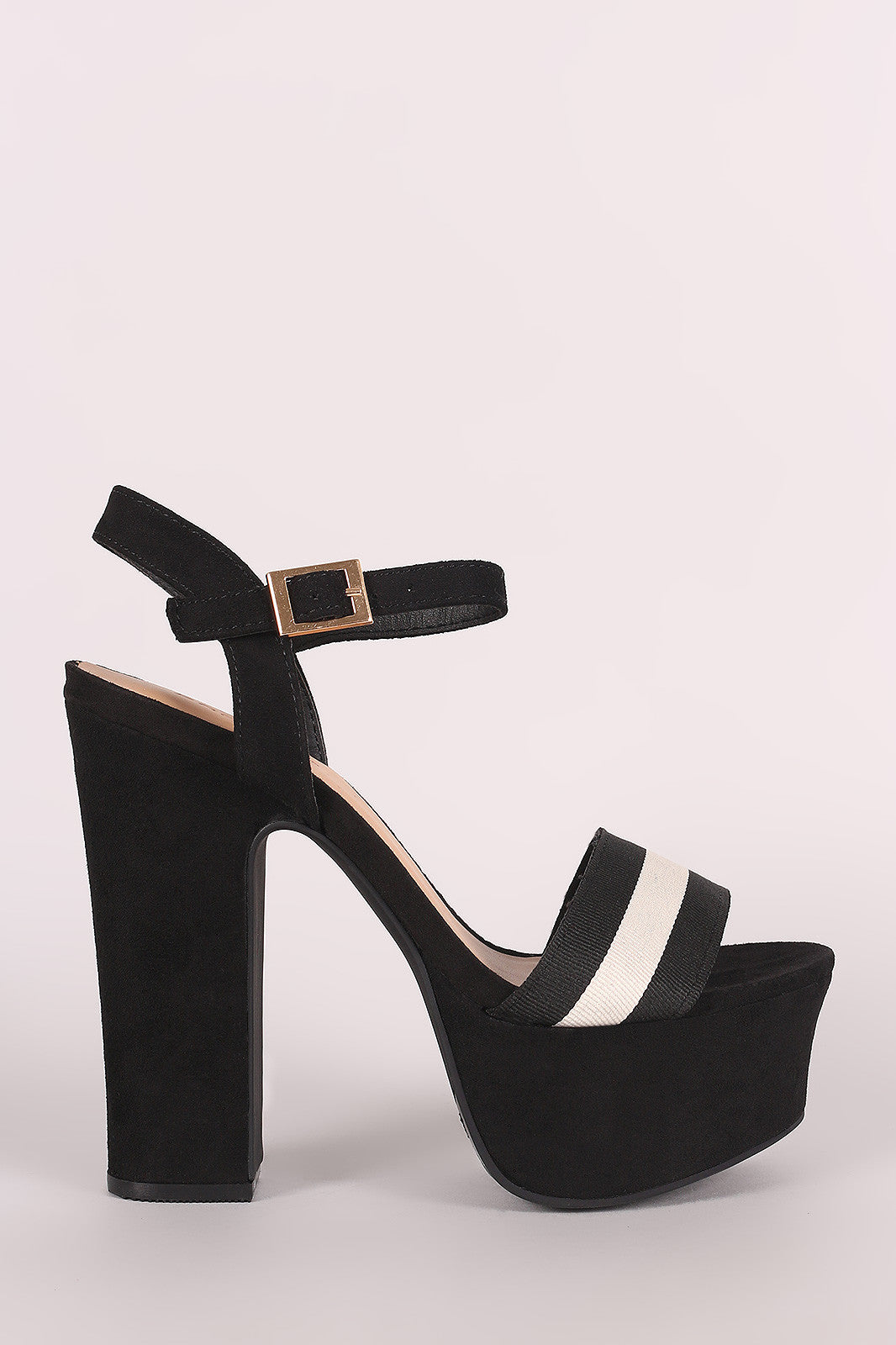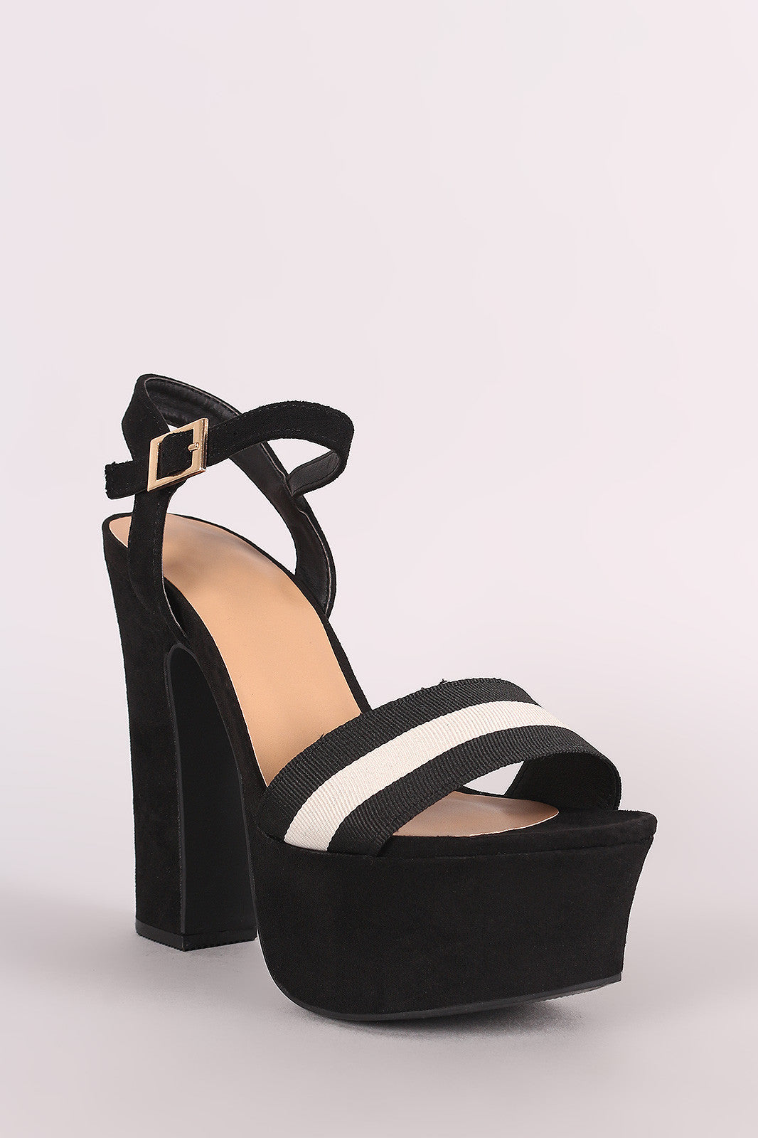 Bamboo Suede Striped Ankle Strap Chunky Platform Heel