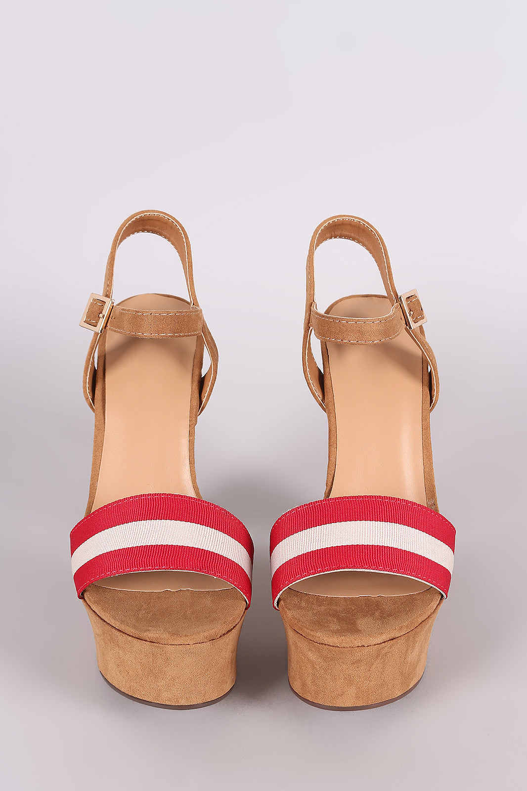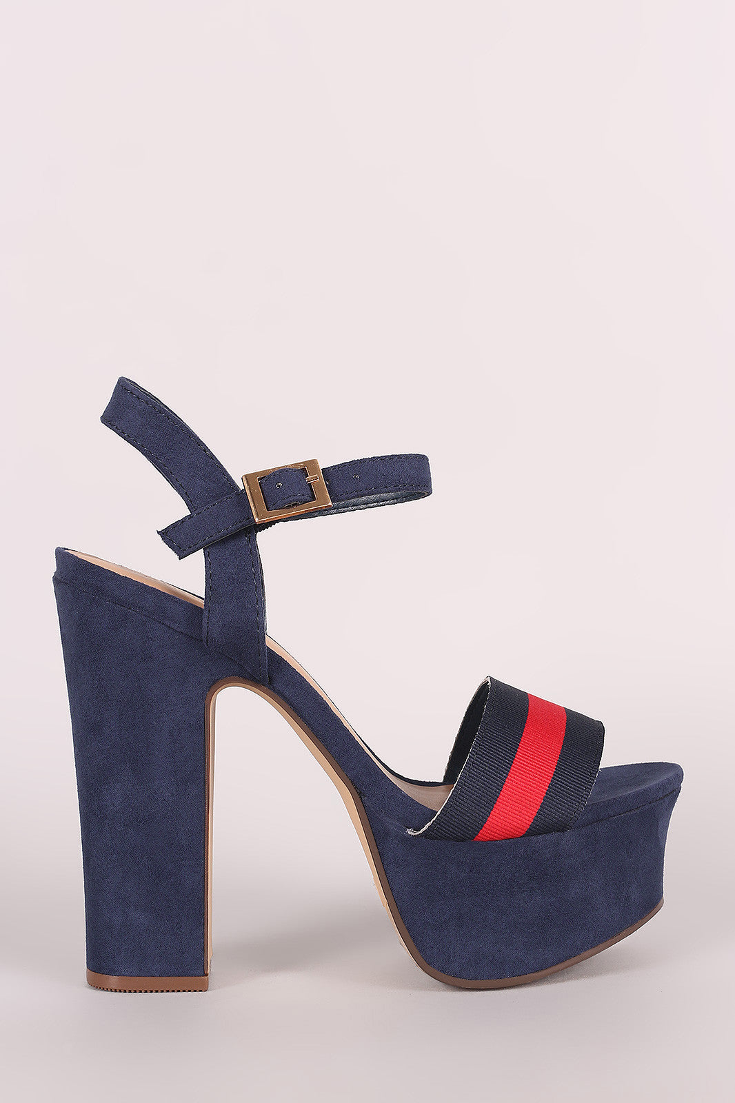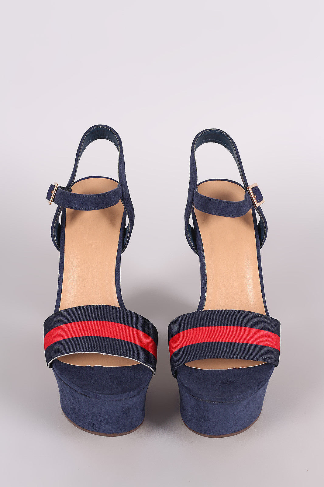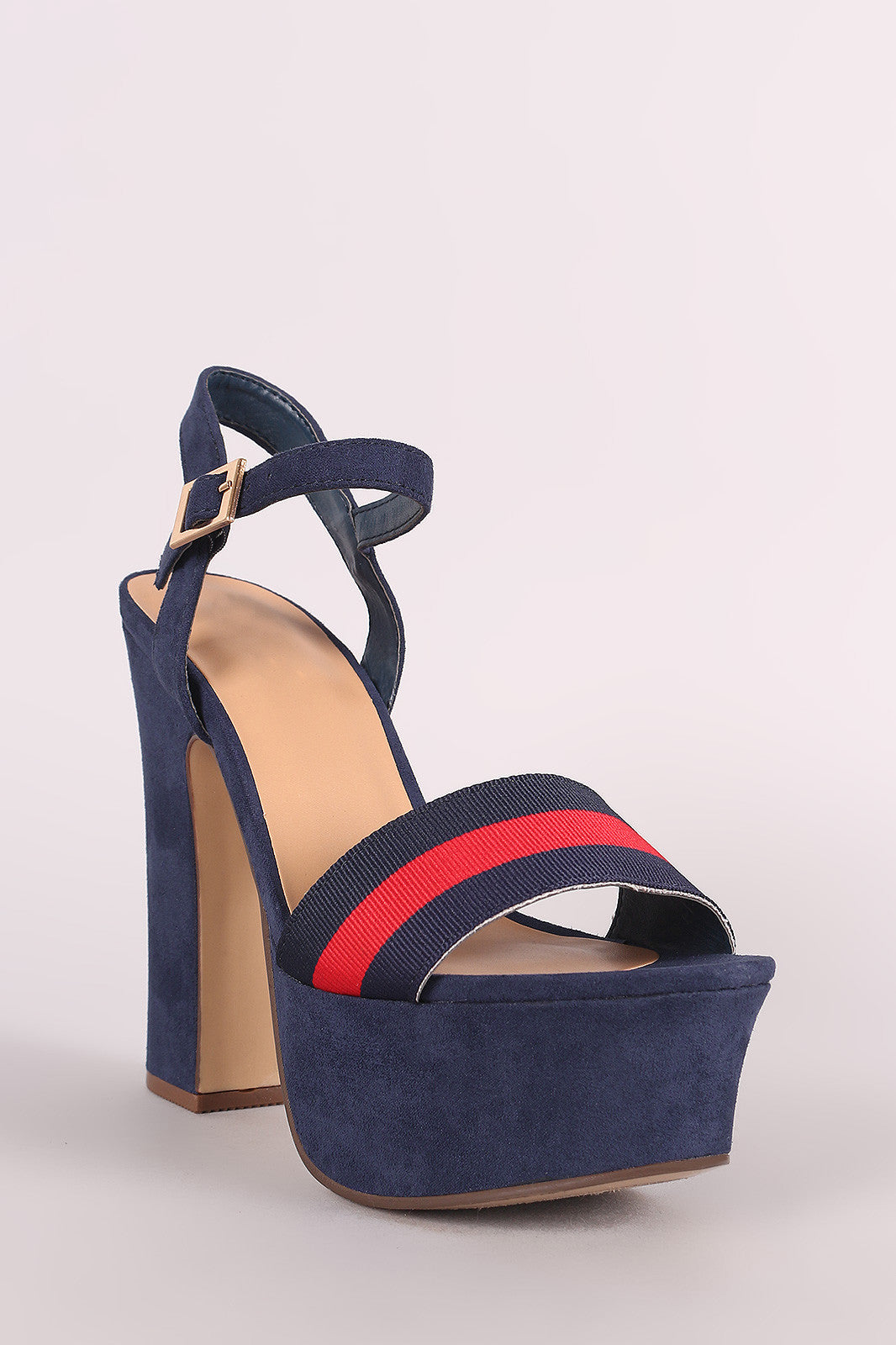 Bamboo Suede Striped Ankle Strap Chunky Platform Heel