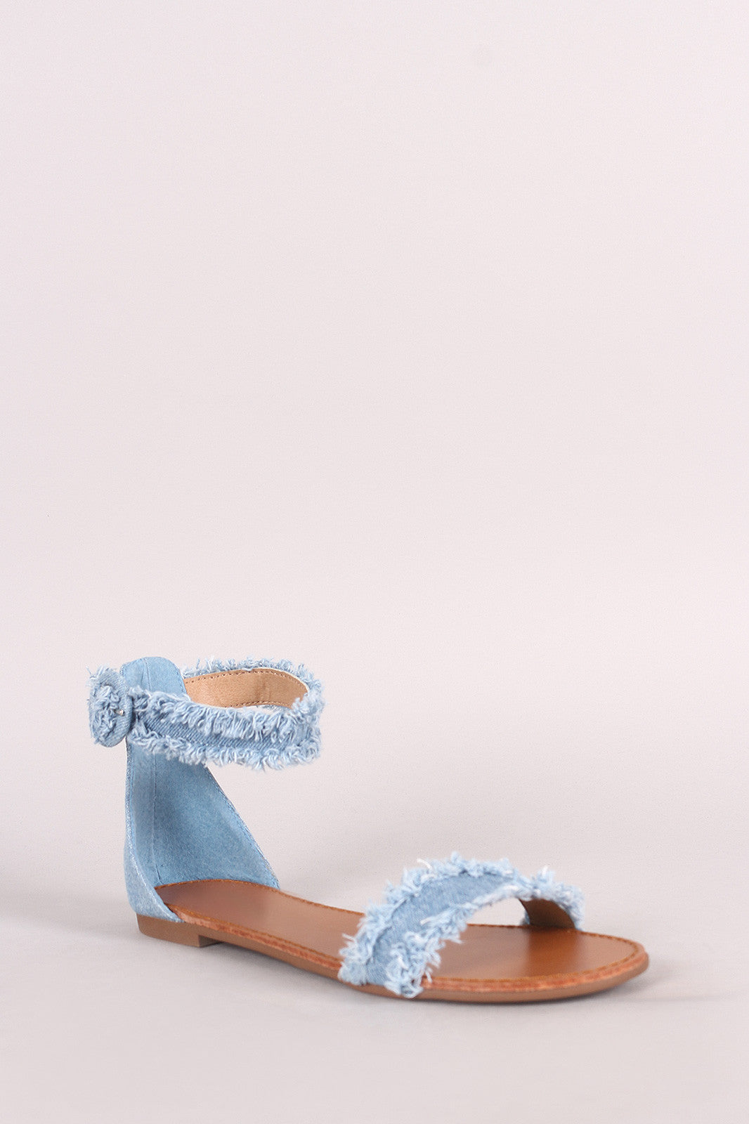Breckelle Frayed Denim Ankle Strap Flat Sandal