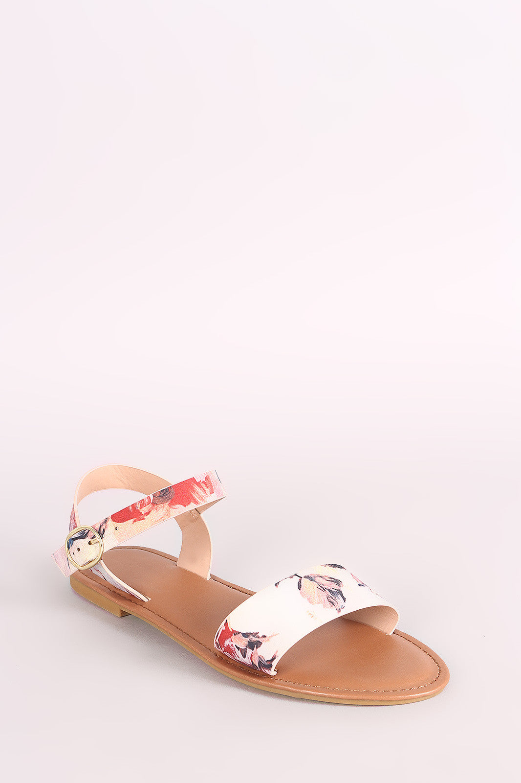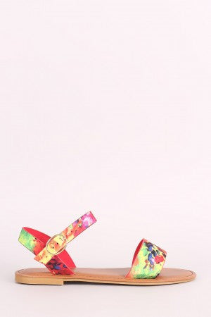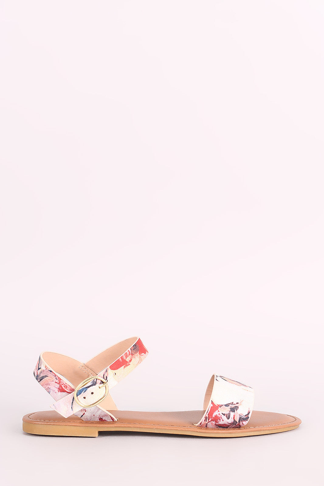 Bamboo Watercolor Print Ankle Strap Flat Sandal