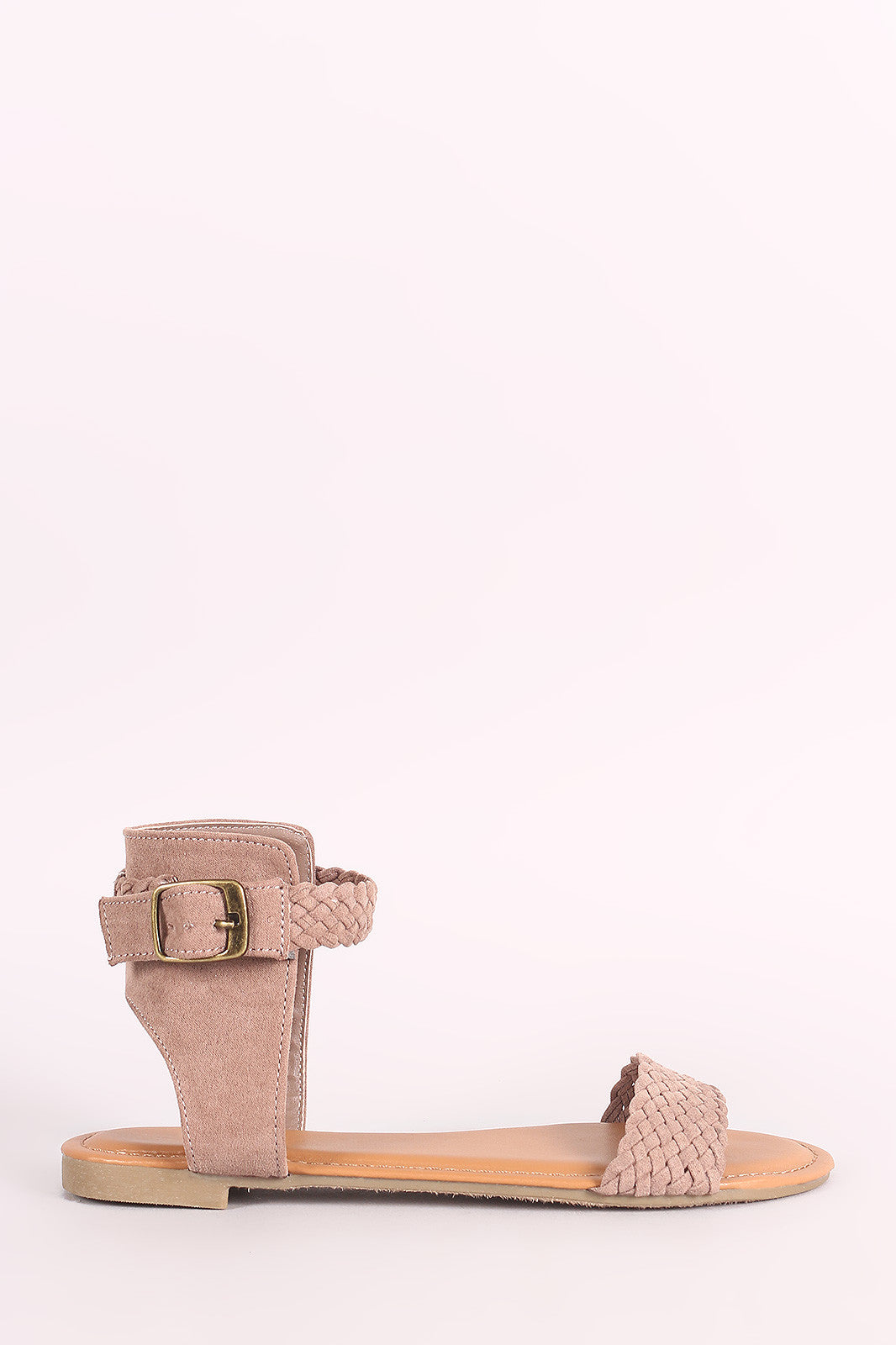Bamboo Suede Braided Ankle Strap Flat Sandal