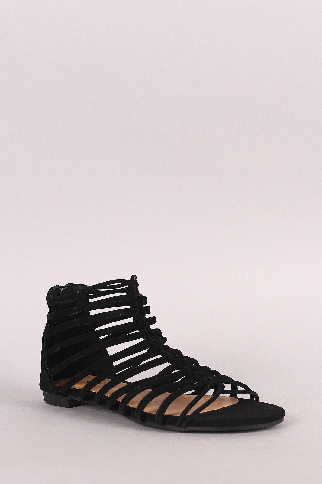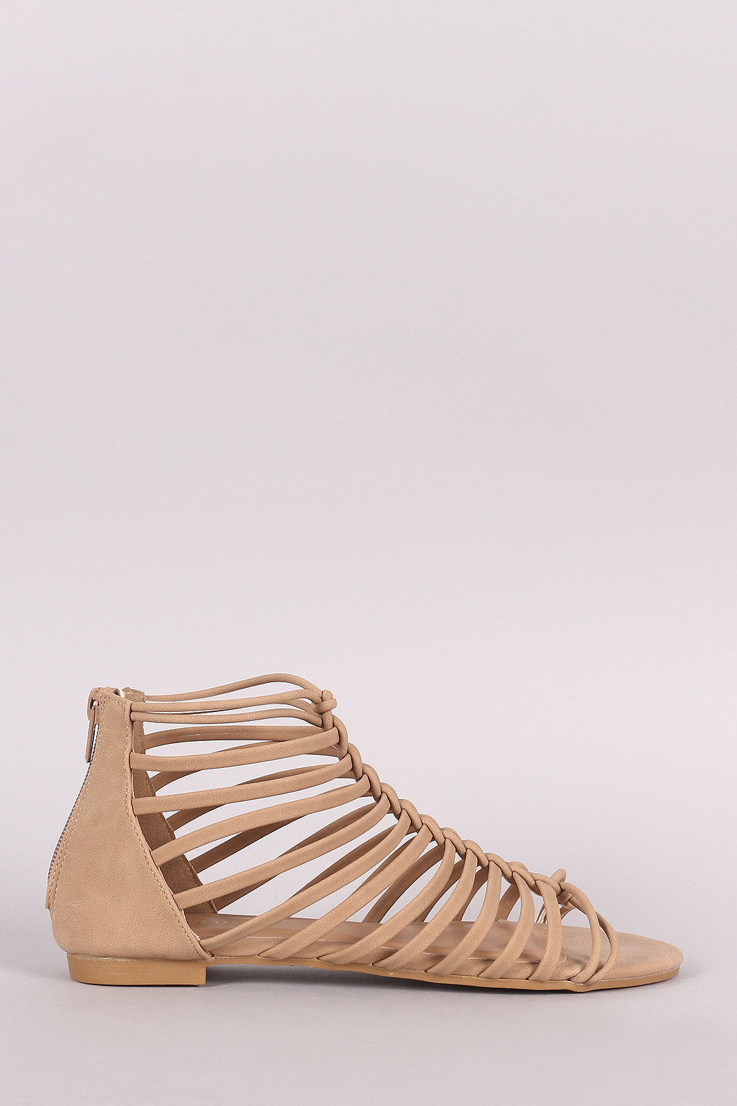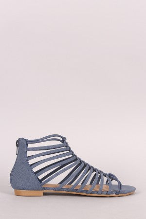 Bamboo Nubuck Braided Strappy Flat Sandal