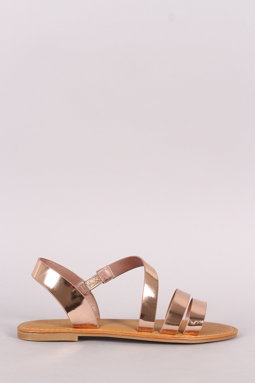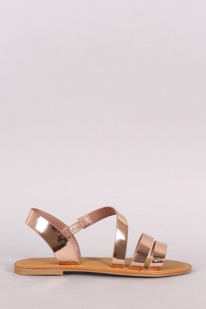 Bamboo Metallic Asymmetrical Strappy Flat Sandal