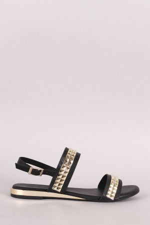 Bamboo Metallic Accent Double Band Slingback Flat Sandal