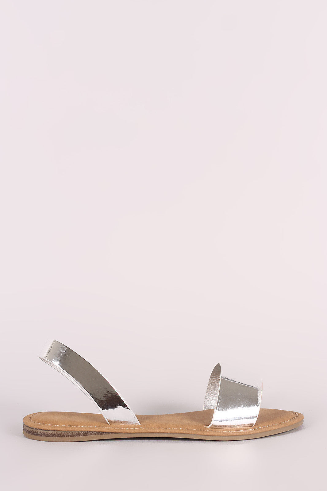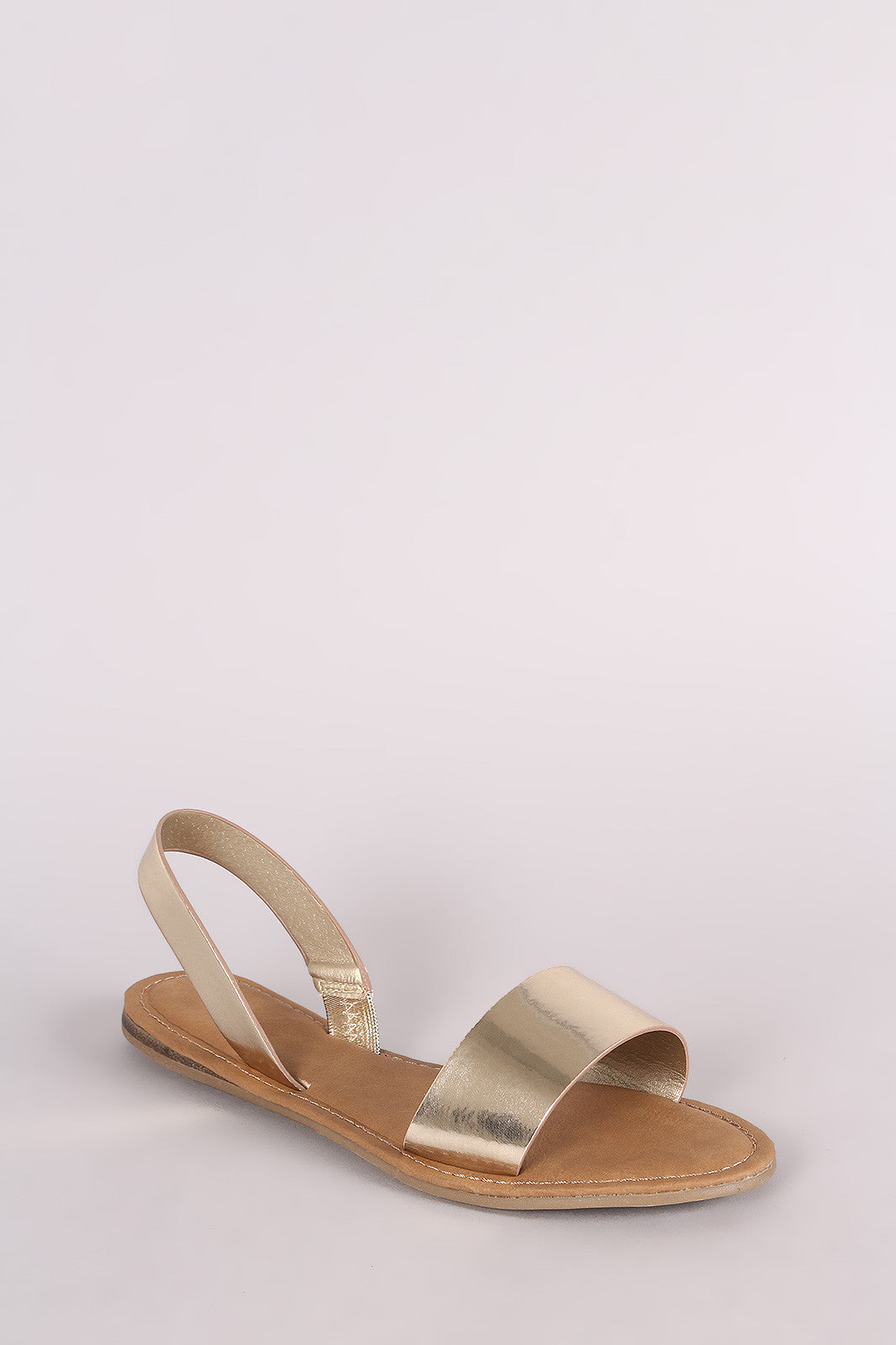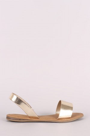 Bamboo Metallic Open Toe Slingback Flat Sandal