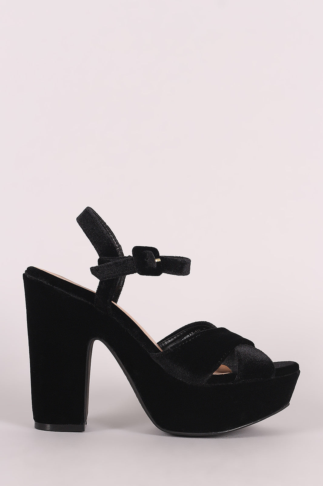 Bamboo Velvet Crisscross Chunky Platform Heel