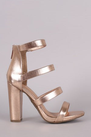 Bamboo Strappy Metallic Ladder-Up Chunky Heel