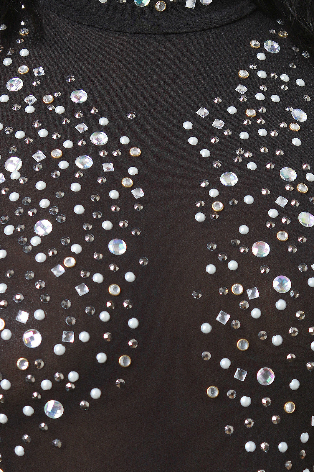 Bedazzled Mesh Mock Neck Fitted Jumpsuit