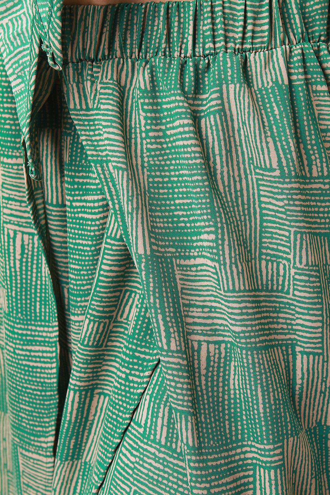 Woven Print Front-Tie Crop Top With Open Front Palazzo Pants Matching Set