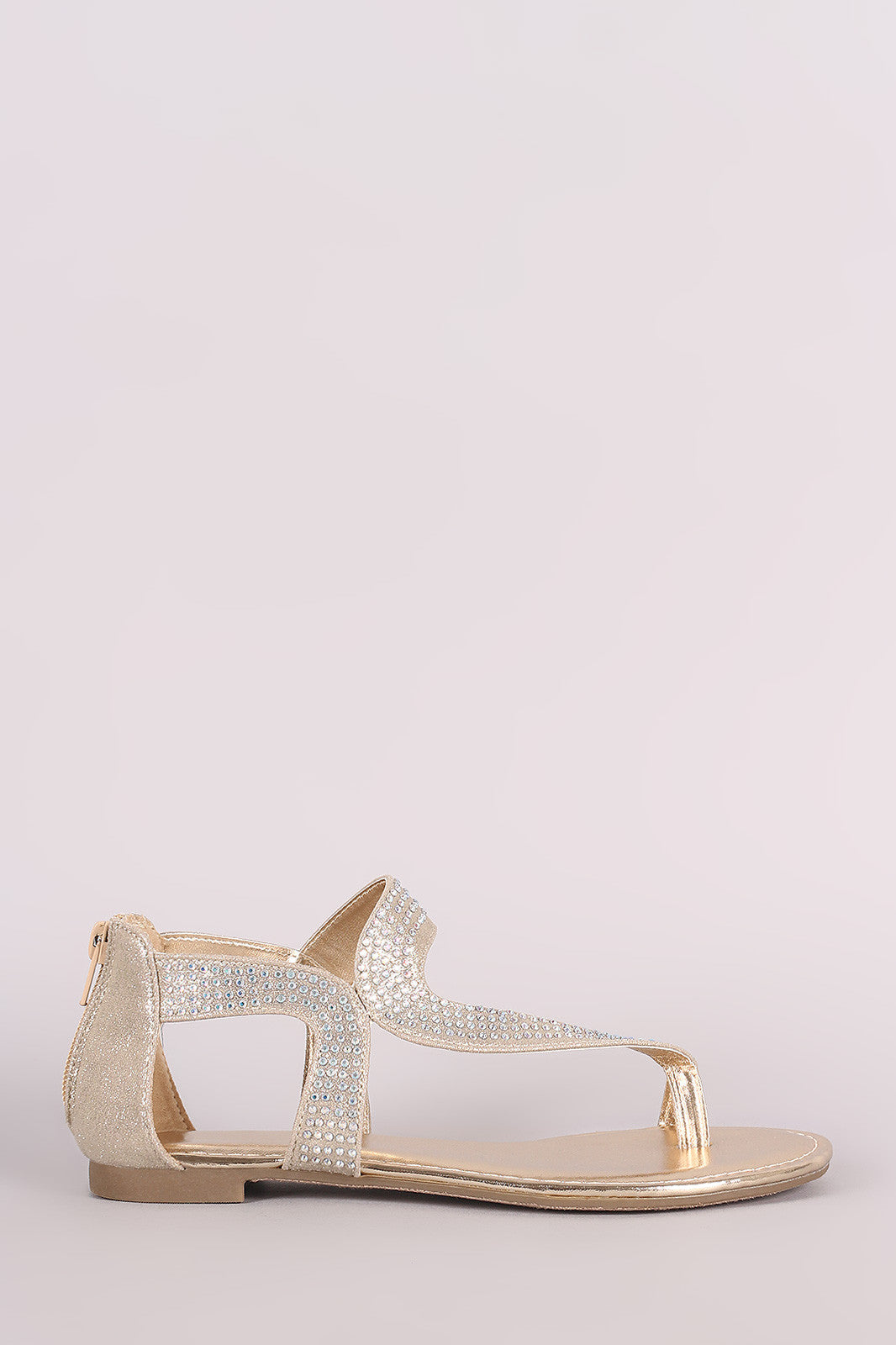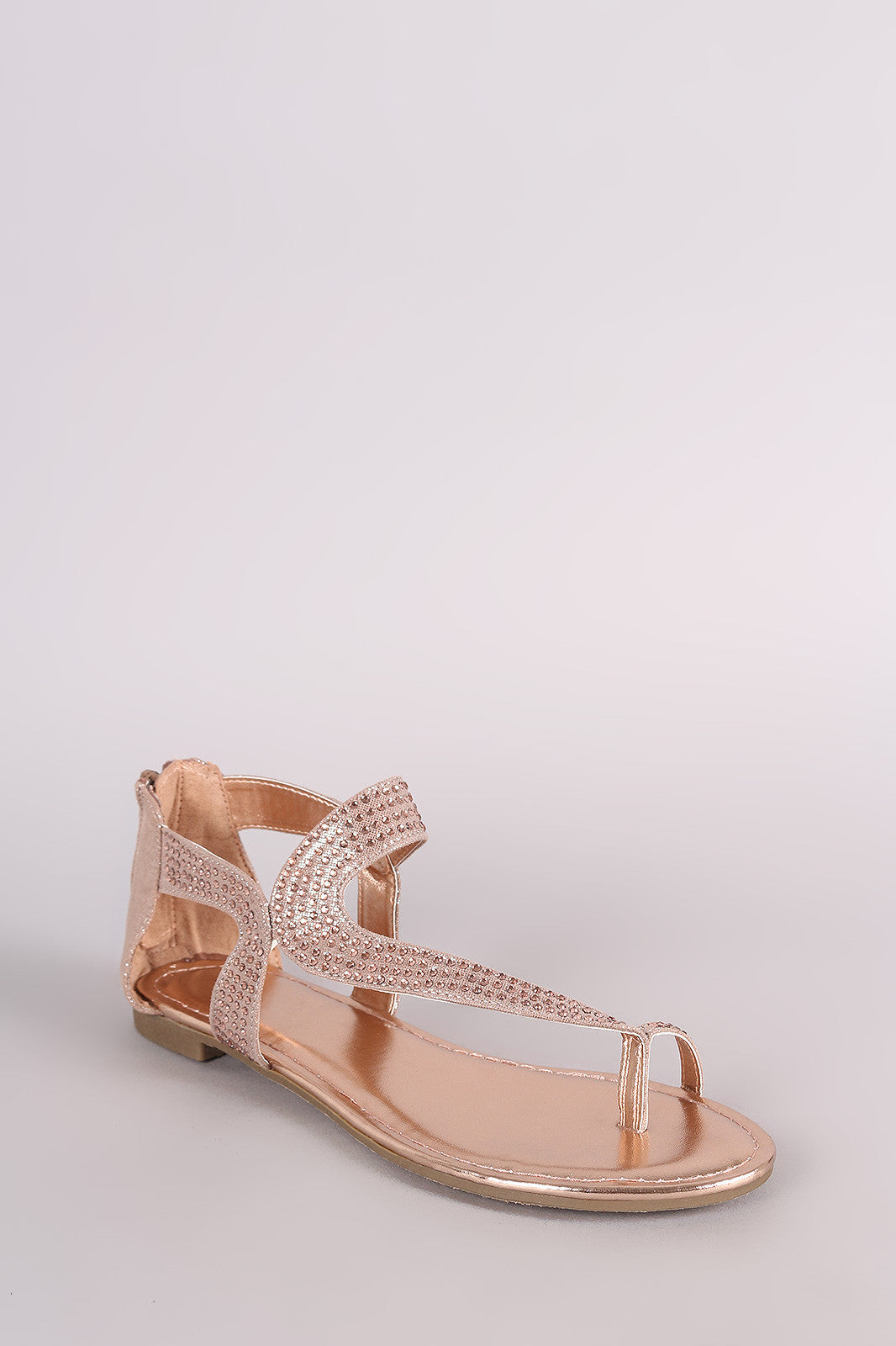Bamboo Metallic Rhinestone Toe Ring Asymmetrical Flat Sandal