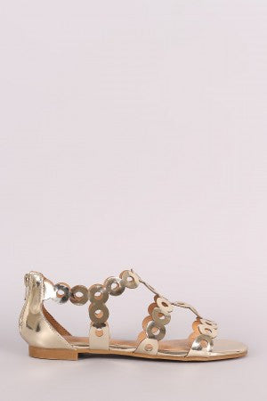 Bamboo Metallic Scalloped Laser Cut Flat Sandal