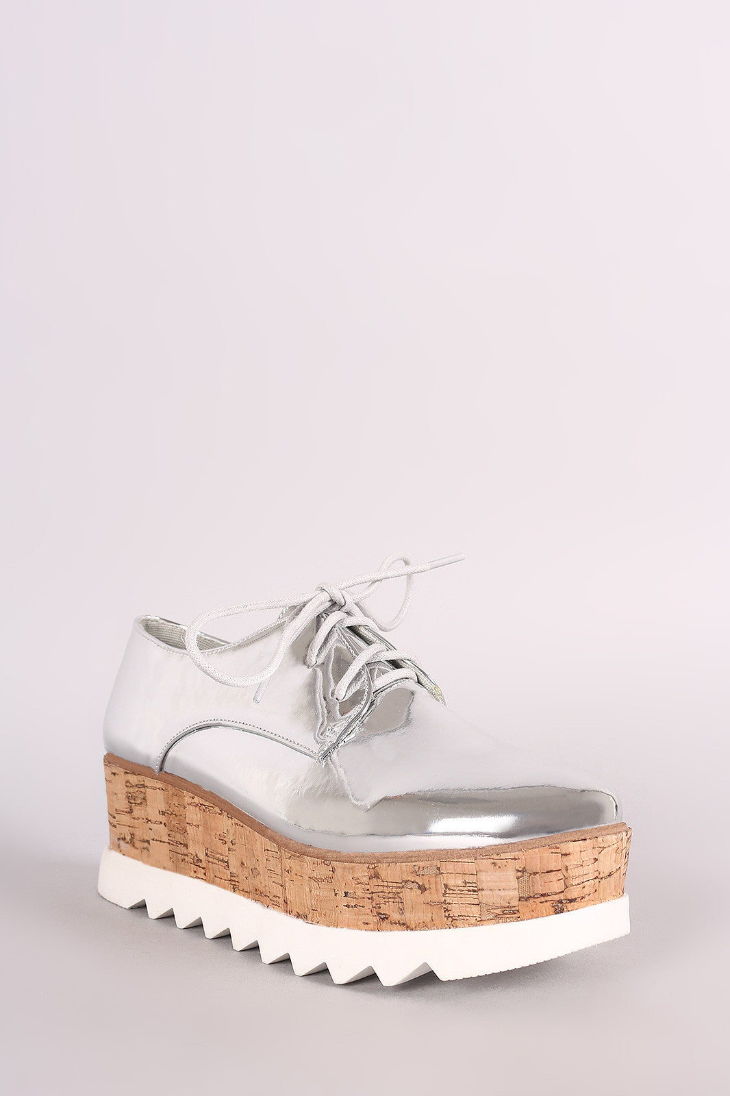 Bamboo Patent Lug Sole Lace Up Oxford Platform Wedge