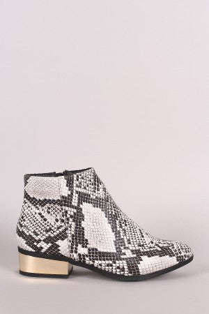 Bamboo Snakeskin Almond Toe Metallic Heeled Ankle Booties