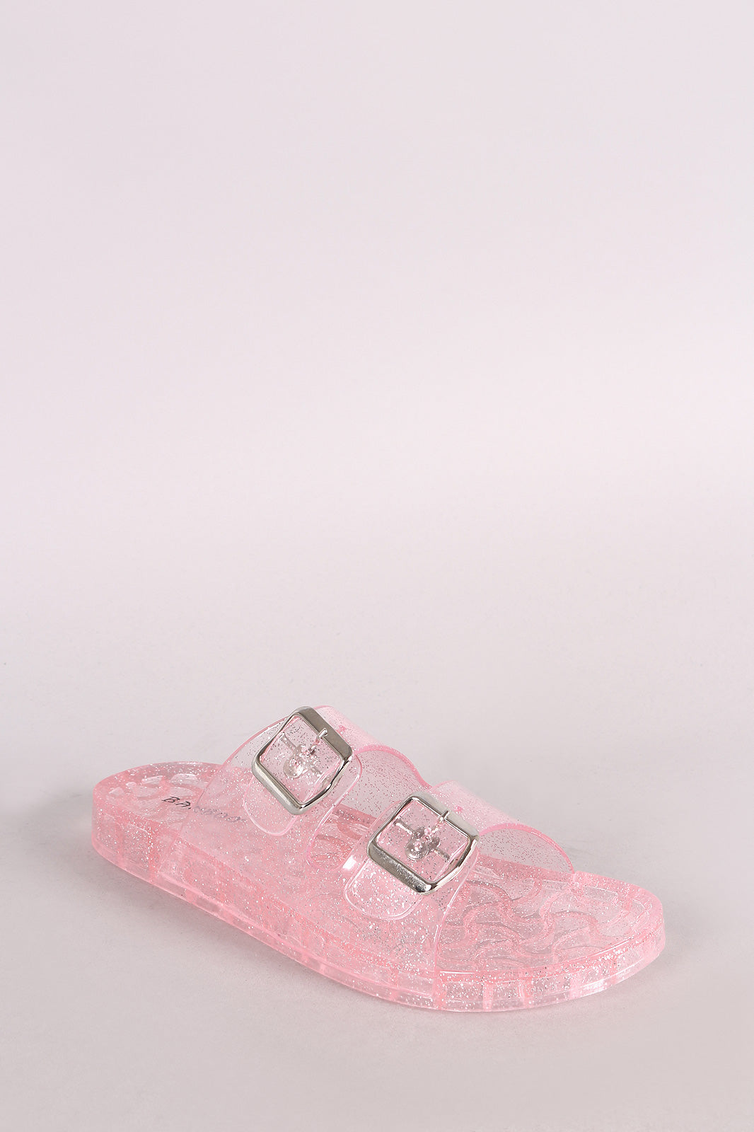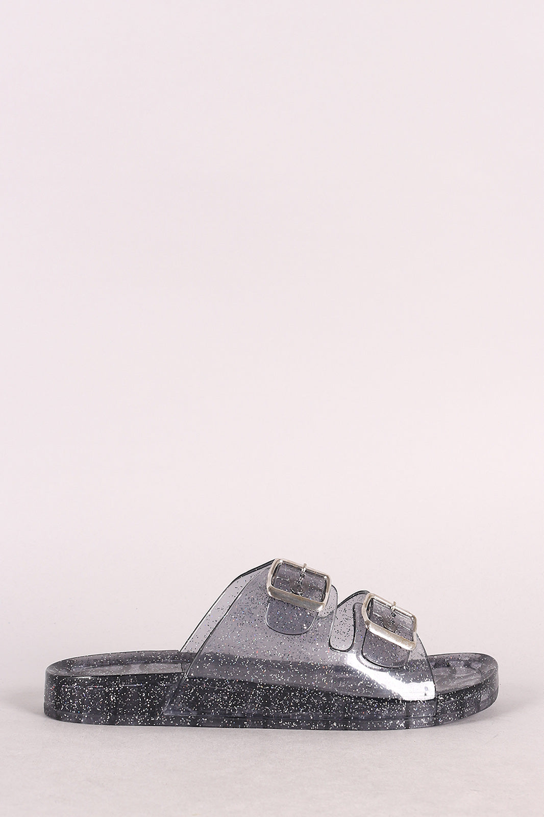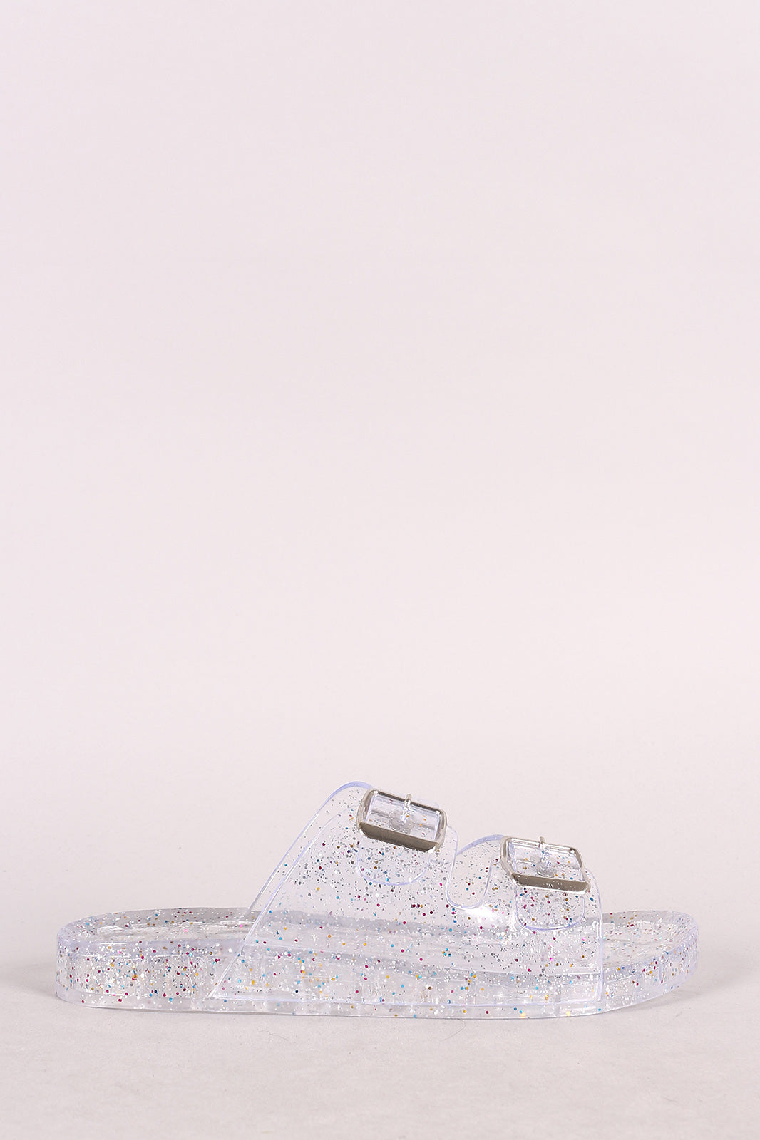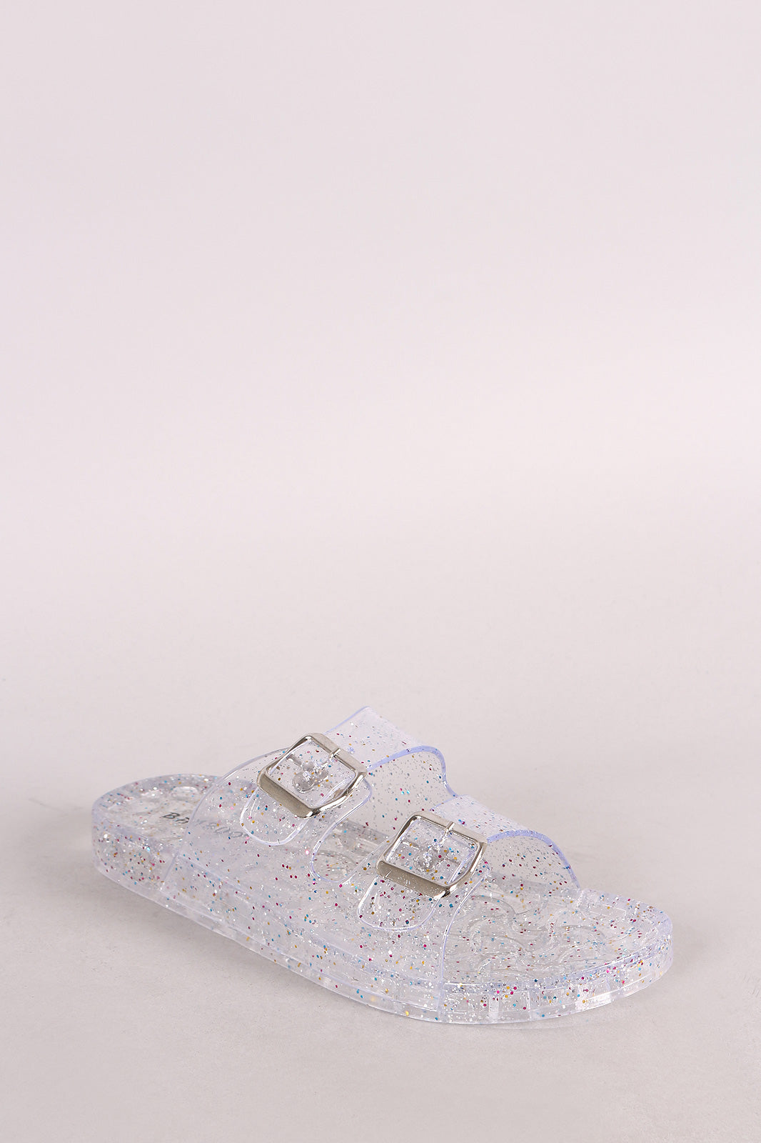 Bamboo Glitter Open Toe Buckled Jelly Slide Sandal
