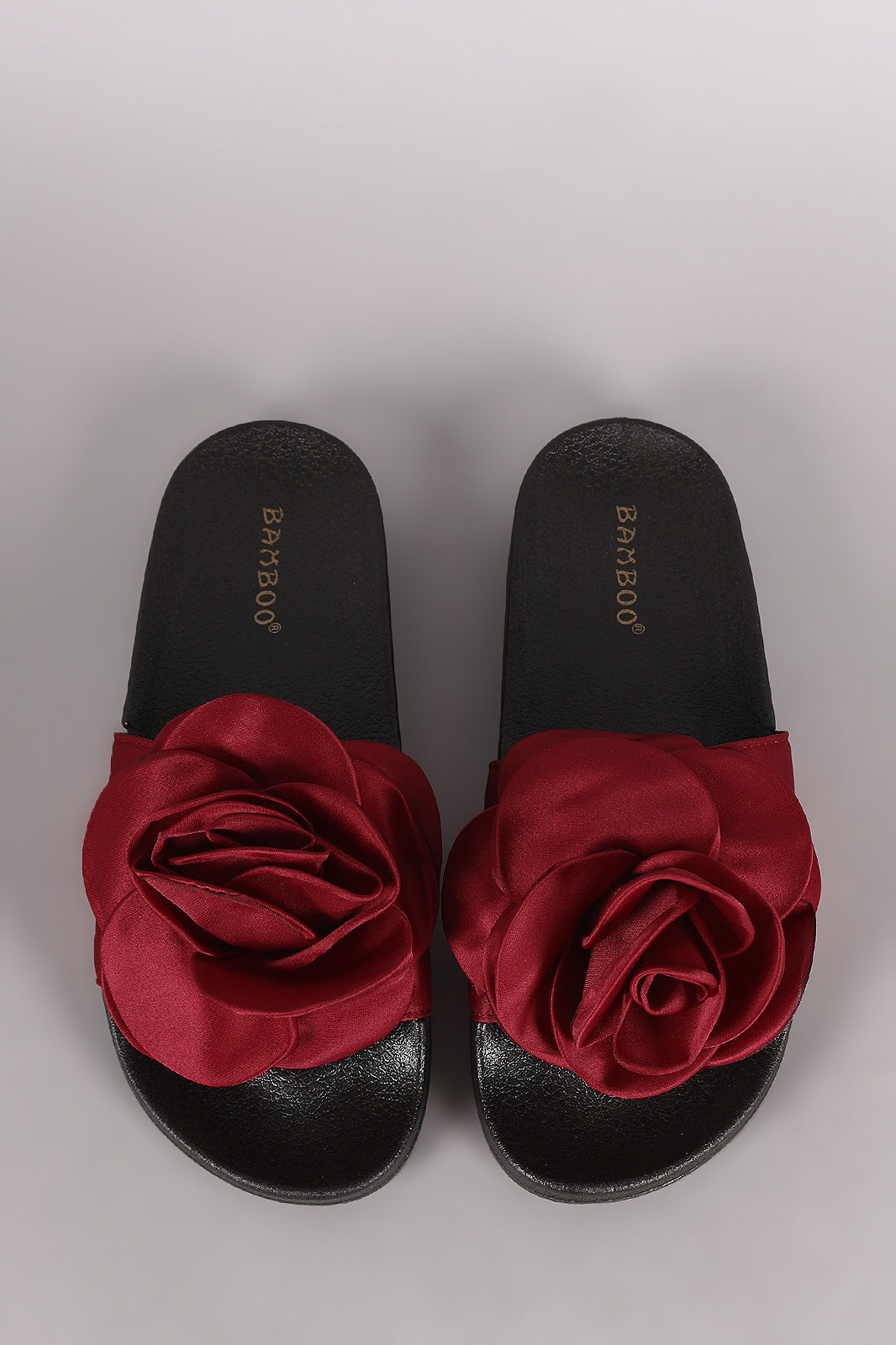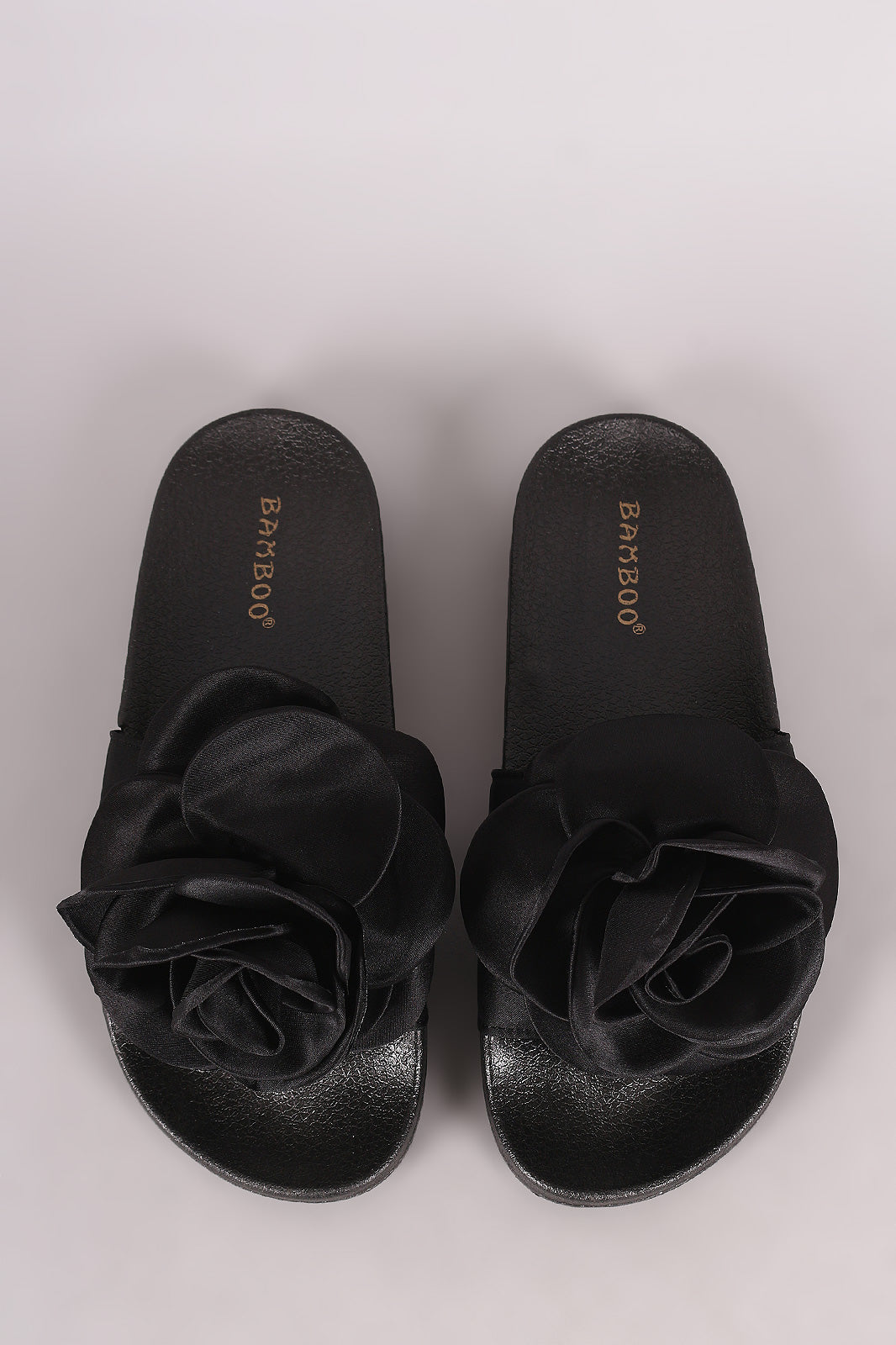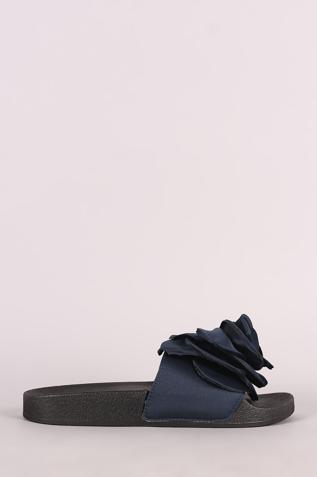 Bamboo Satin Oversized Rosette Applique Slide Sandal