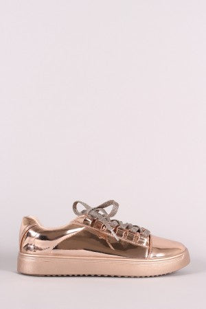 Bamboo Metallic Patent Low Top Glitter Lace Up Sneaker