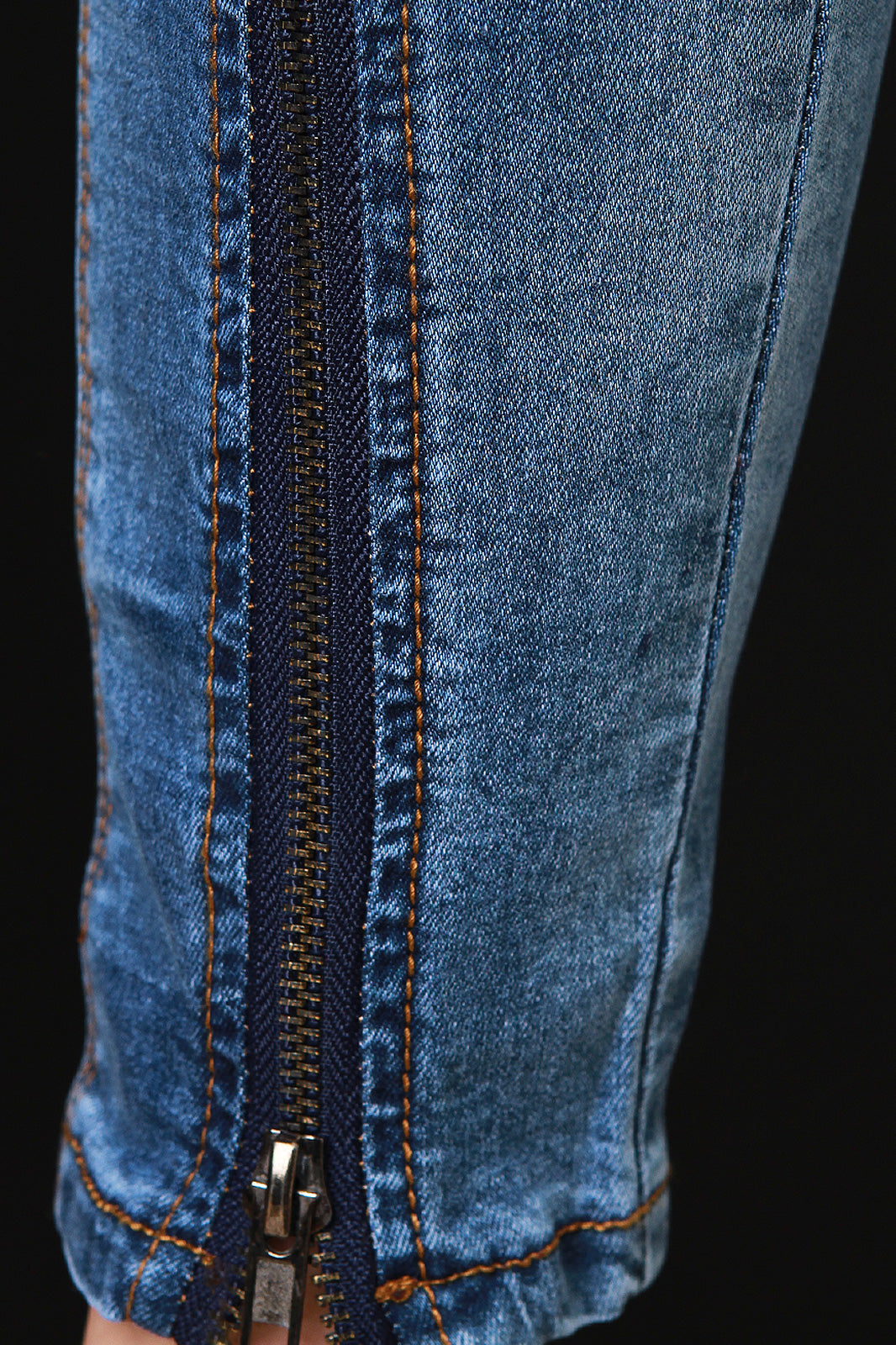 Zipper Trim Distressed Cutout Knee Skinny Ankle Jeans