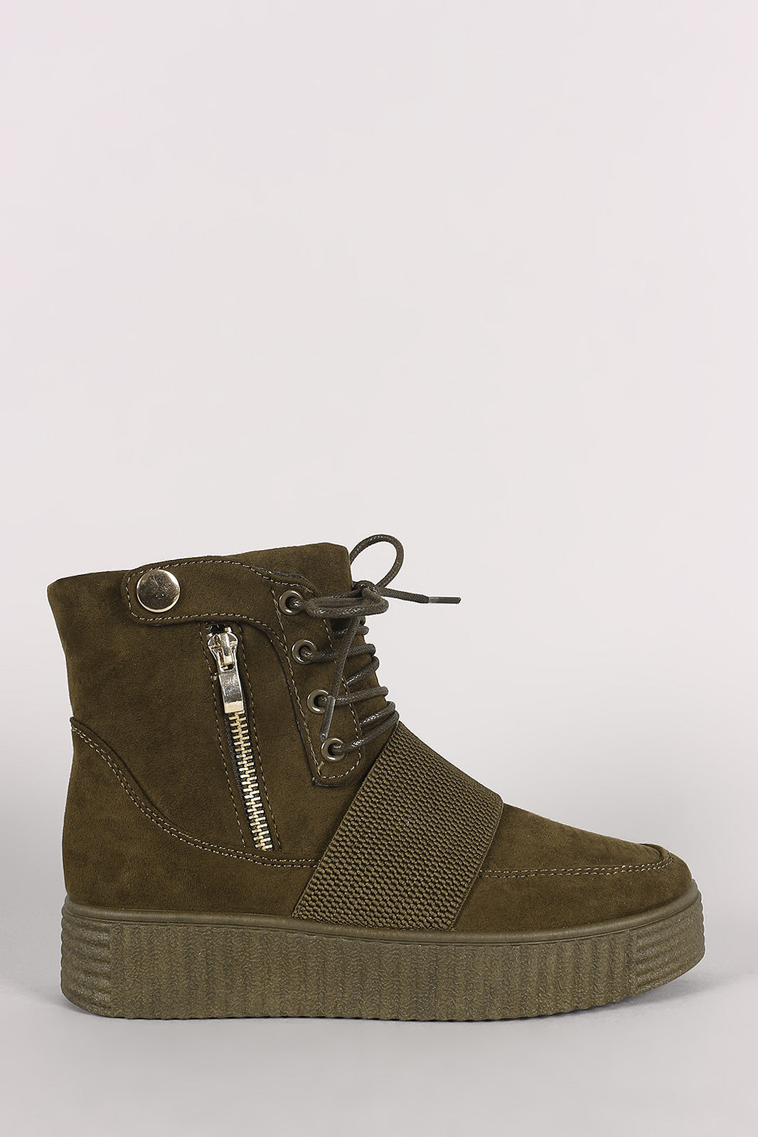 Bamboo Suede Zipper High Top Lace Up Creeper Sneaker Boots