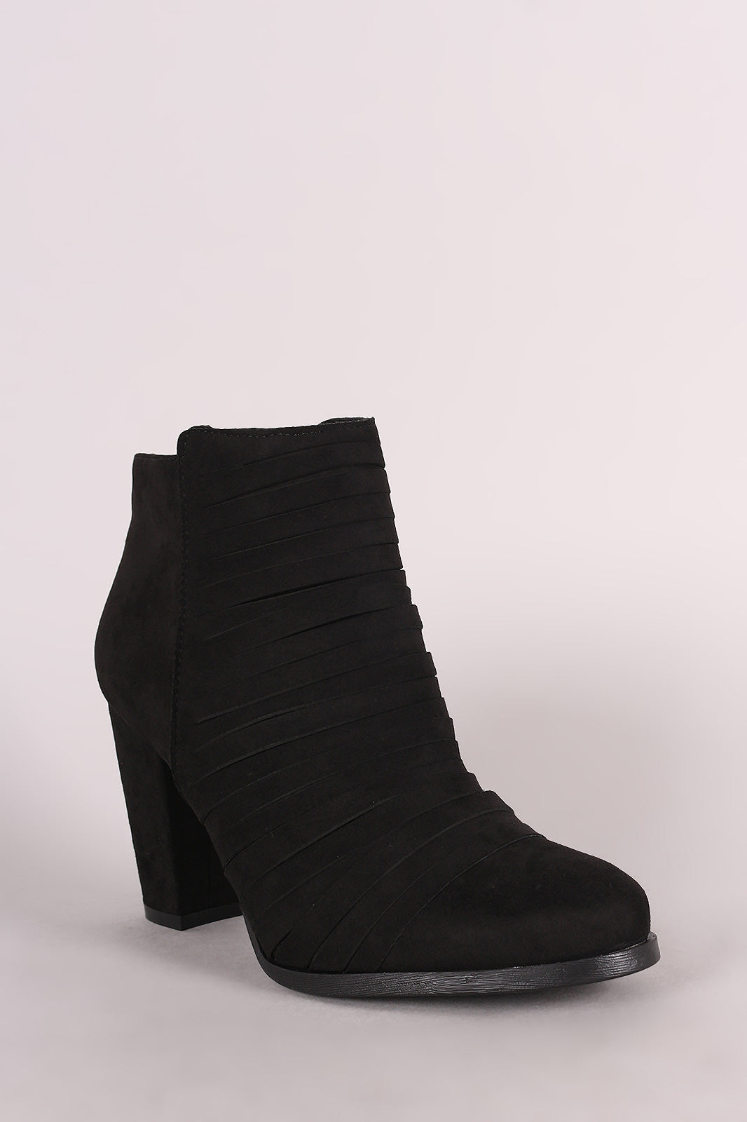 Bamboo Suede Slashed Chunky Heeled Ankle Boots