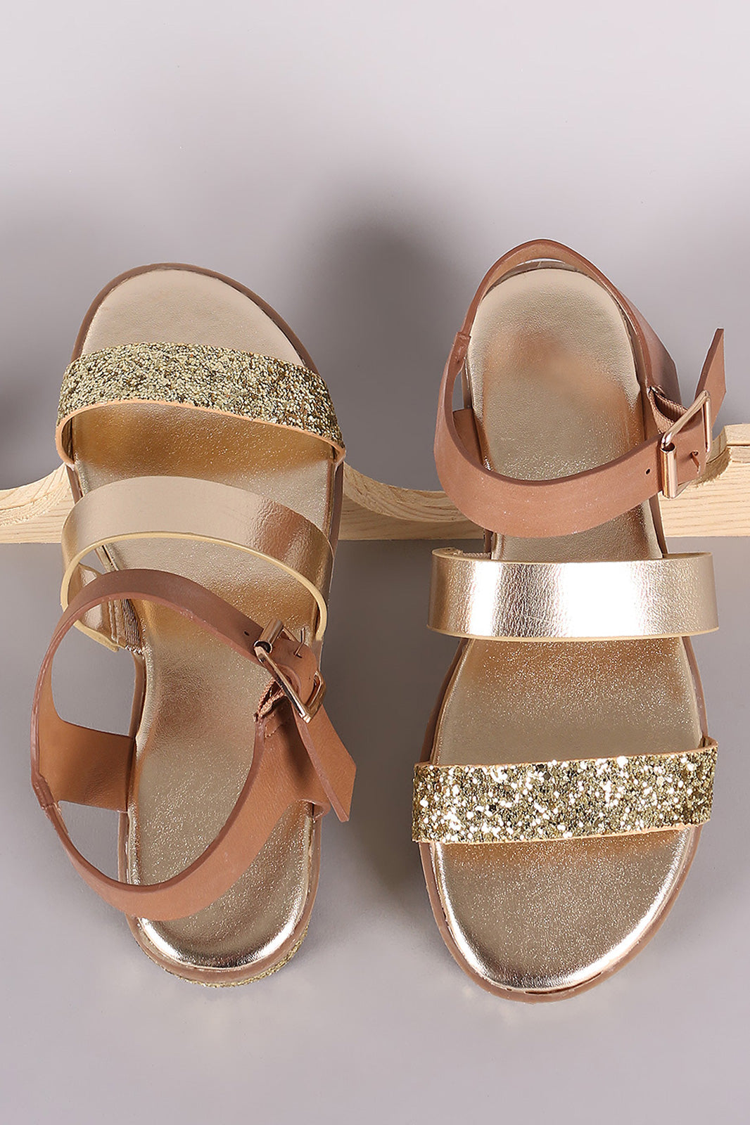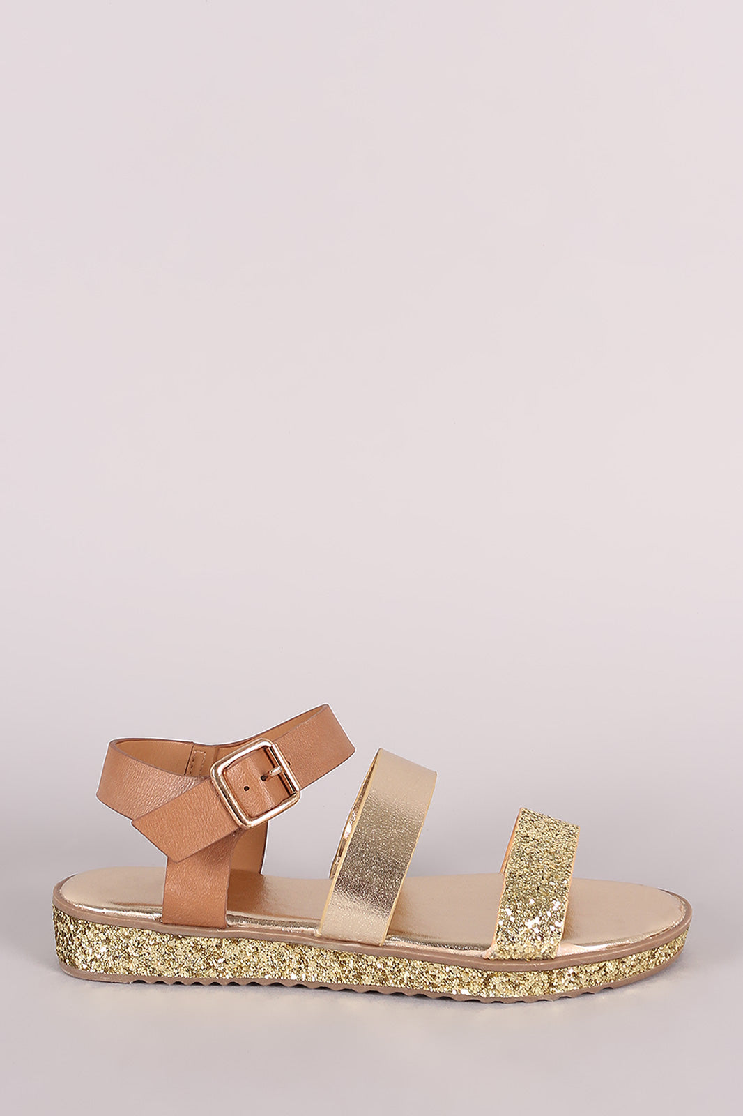 Bamboo Glitter Encrusted Double Strap Flatform Sandal